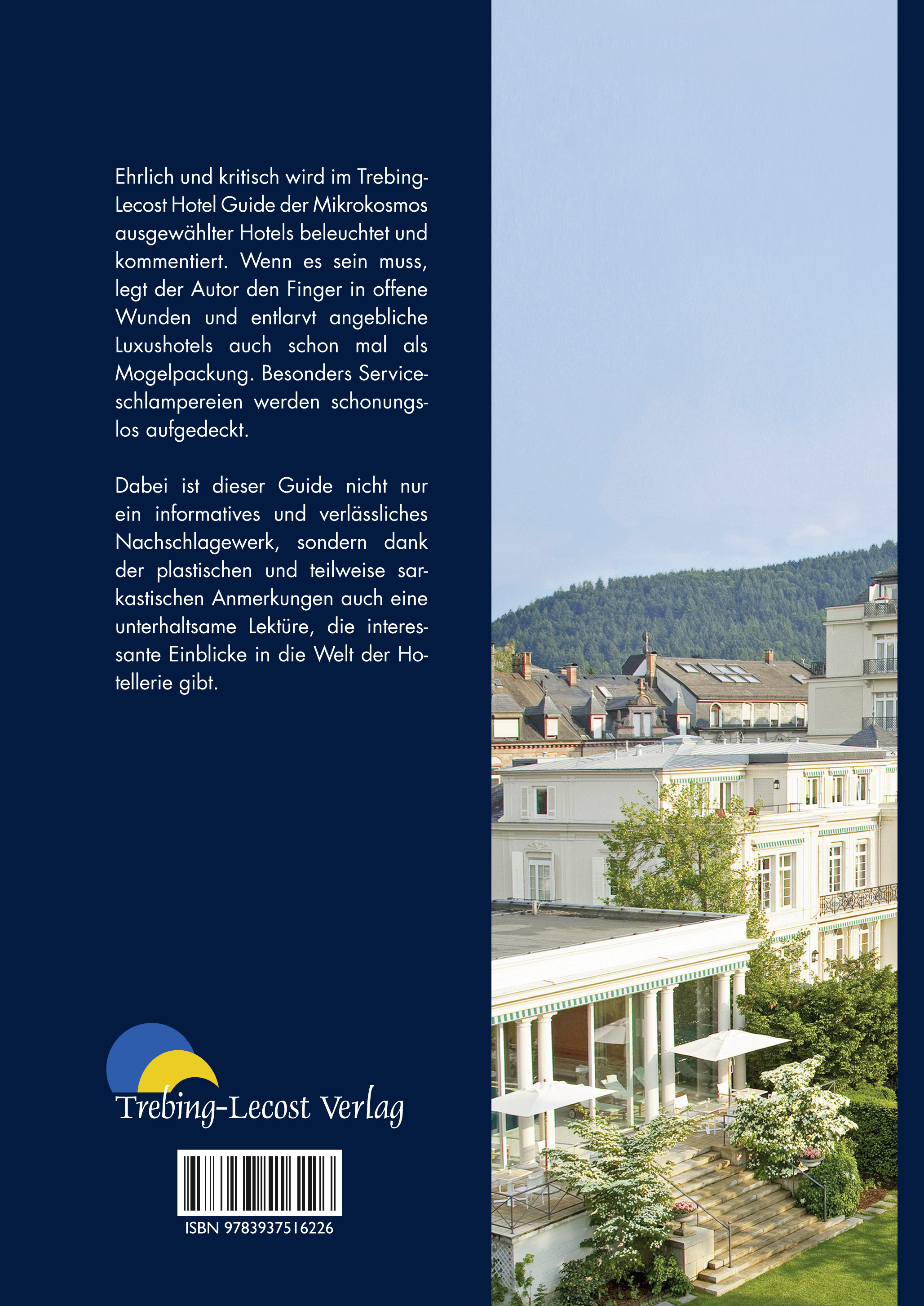 Ehrlich und kritisch wird im Trebing-Lecost Hotel Guide der Mikrokosmos ausgewählterHotels beleuchtet und kommentiert. Wenn es sein muss, legt der Autor den Finger in offeneWunden und entlarvt angebliche Luxushotels auch schon mal als Mogelpackung. BesondersServiceschlampereien werden schonungslos aufgedeckt.Dabei ist dieser Guide nicht nur ein informatives und verlässliches Nachschlagewerk, sonderndank der plastischen und teilweise sarkastischen Anmerkungen auch eine unterhaltsameLektüre und gibt interessante Einblicke in die Welt der Hotellerie.
