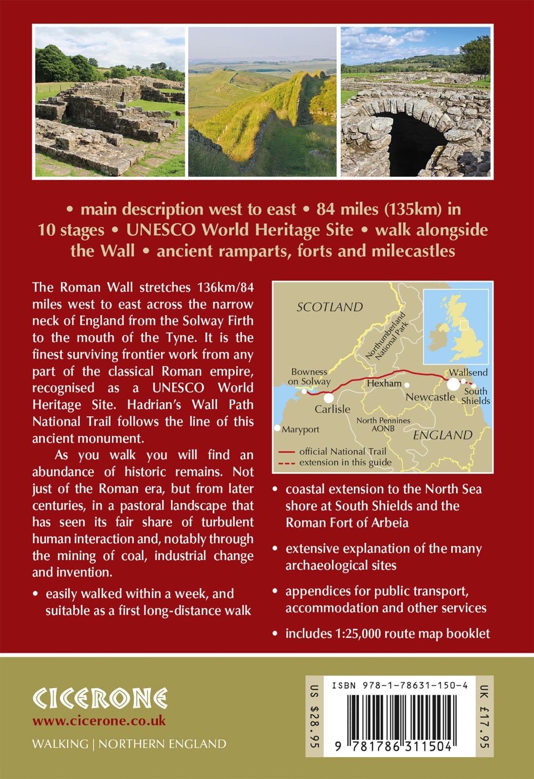 Hadrians Wall Path guidebook to walk the 135km (84 mile) National Trail. Described in both directions, the main description is west to east between Bowness-on-Solway and Wallsend, Newcastle, with an extension to South Shields. With extensive historical information related to this World Heritage site and separate 1:25,000 OS map booklet included.