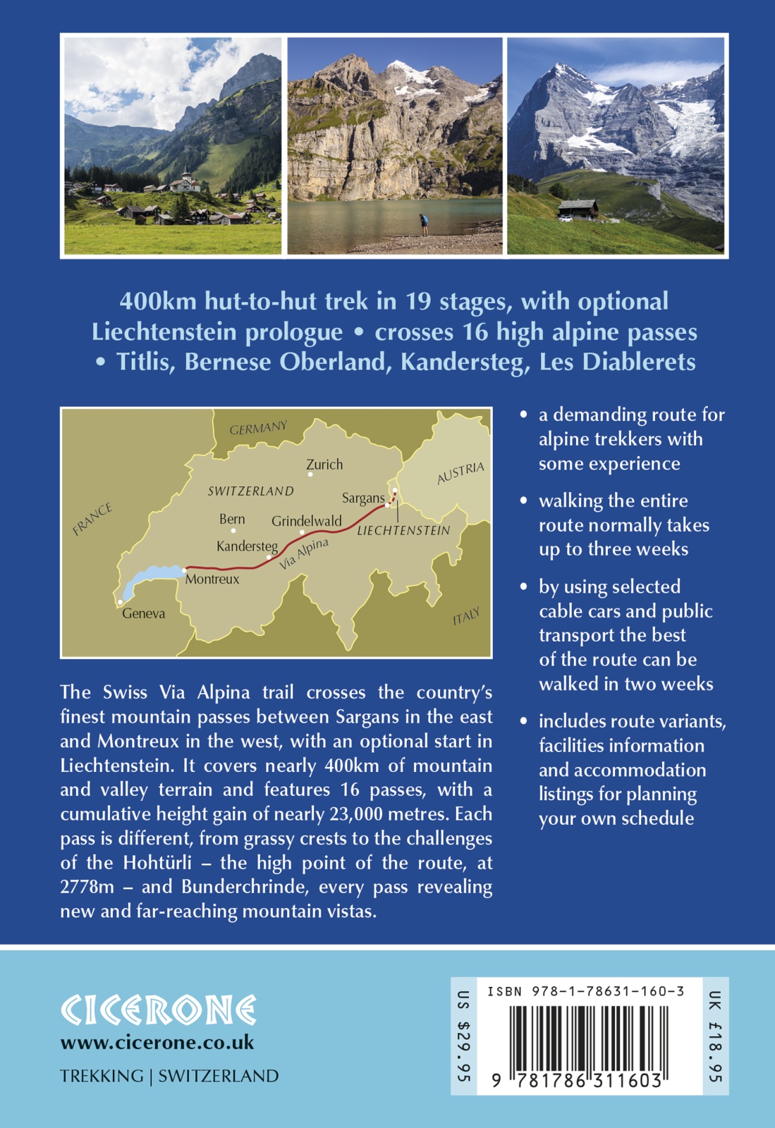 Guidebook to the Swiss Via Alpina, a 400km trek east-west across Switzerland, with options of detouring along the Alpine Pass Route. This demanding 3-week trek crosses 16 passes, including the 2778m Hohtürli, in a total of 19 stages from Sargans to Montreux, as well as a prologue stage from Liechtenstein. Requires good fitness and experience.