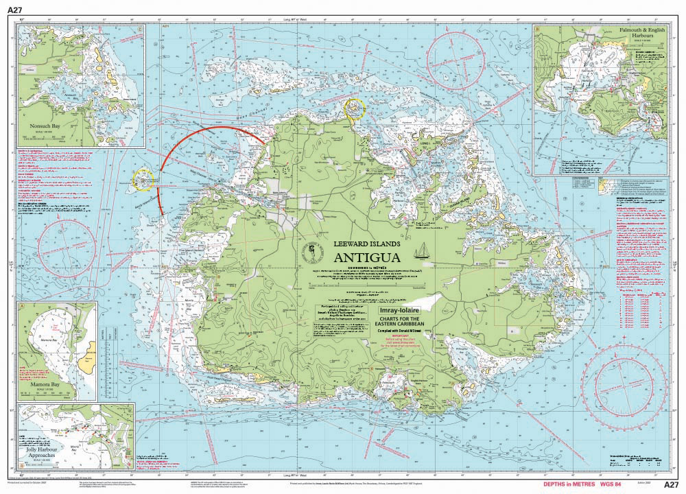 For this edition the chart has been fully updated using the latest depth surveys. The chart also includes a new plan of Jolly Harbour.