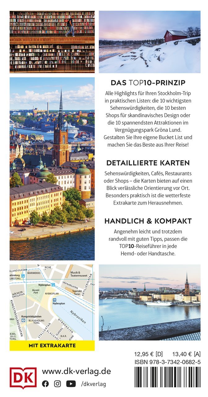 Die 10 schönsten Inseln des Schärengartens, die 10 bedeutendsten Museen in Stockholm, die 10 besten Läden für Skandinavisches Design: Übersichtlich und kompakt präsentiert der TOP10 Stockholm-Reiseführer alle wichtigen Sehenswürdigkeiten, Orte und Aktivitäten in der größten Stadt Skandinaviens Stockholm. Dank der praktischen TOP10-Listen - gegliedert nach Highlights, Themen und Stadtteilen - können Sie einfach und bequem Ihre ganz persönliche Bucket List für den nächsten Stockholm-Urlaub planen und umsetzen. Das handliche Format passt in jede Hand- und Hemdtasche - ideal zum Mitnehmen!
