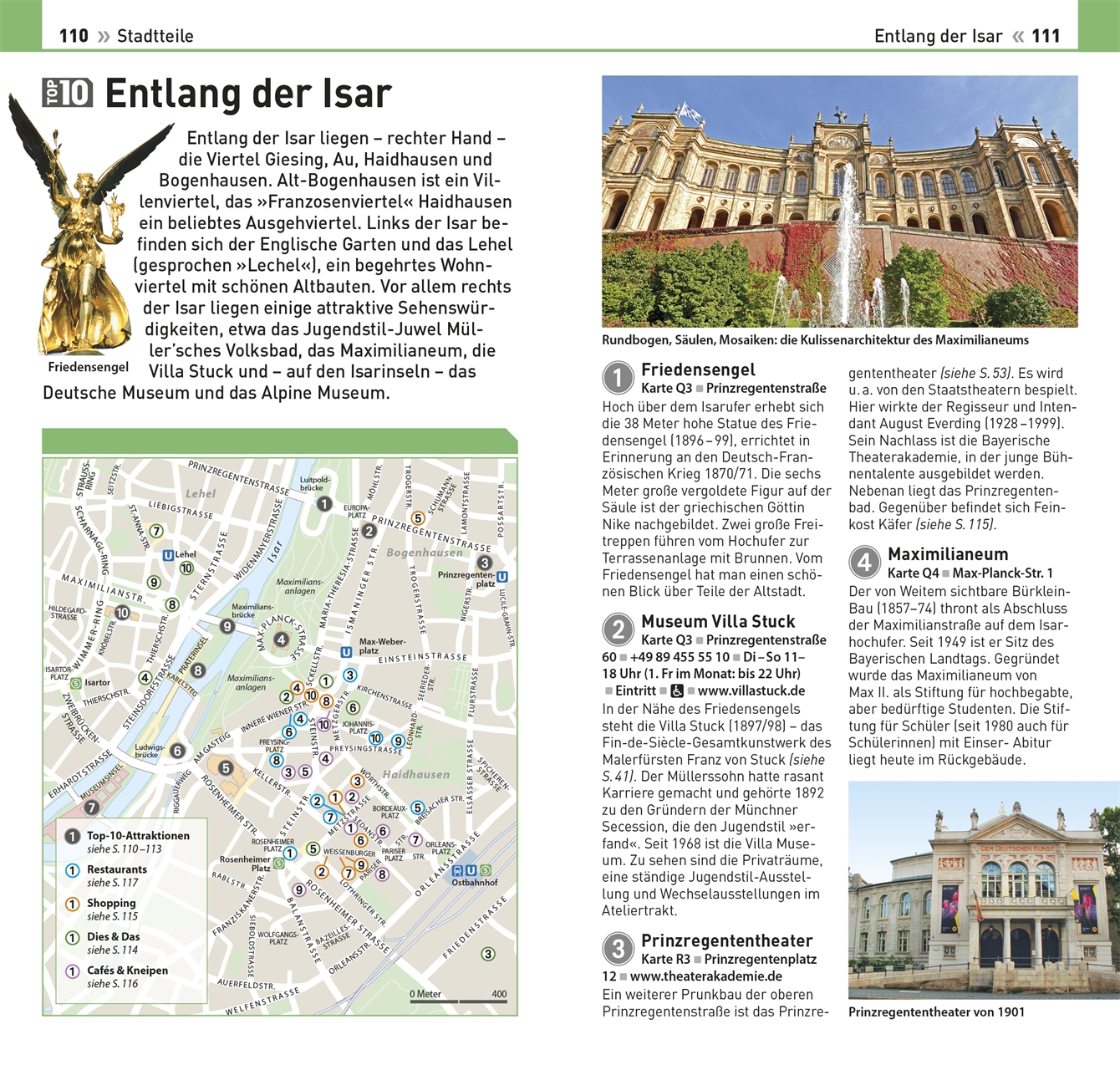 Schlendern Sie durch das beeindruckende Museumsviertel, entspannen Sie in einem Biergarten in der Altstadt oder entfliehen Sie der Großstadt durch einen Abstecher an die oberbayerischen Seen oder in die nahen Alpen - im TOP10 München-Reiseführer werden die einzelnen Stadtteile und die Umgebung Münchens übersichtlich und ausführlich porträtiert. Stimmungsvolle Fotos und detaillierte Stadtteil-Karten zeigen berühmte Sehenswürdigkeiten, charmante Stadtviertel sowie Restaurant-, Shopping- oder Tourenvorschläge auf einen Blick.