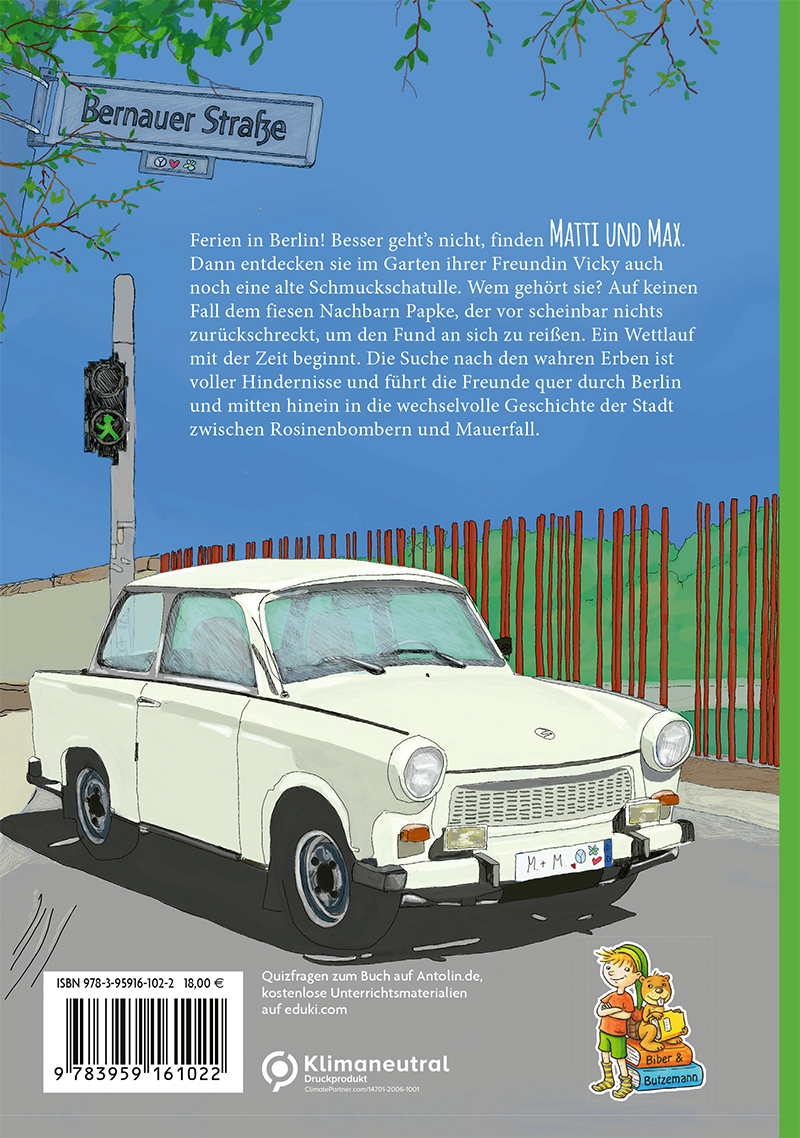 | Schlagworte | 1989 • 1990 • Abenteuer • Alexanderplatz • Berlin • Berliner Mauer • Berlin mit Kindern • besetzte Stadt • Brandenburger Tor • Charlottenburg • Deutschland • Familie • Familienreiseführer • Hauptstadt • Kinder • Kinderkrimi • Kinderreiseführer • Krimi • Mauer • Mauerbau • Mauerfall • Mitte • Museum • Olympiastadion • Prenzlauer Berg • regional • regionale Kinderbücher • regionales Kinderbuch • Reise • Reiseführer • Rosinenbomber • Schatzsuche • Urlaub • Wannsee • Wende • Zehlendorf • zoo |