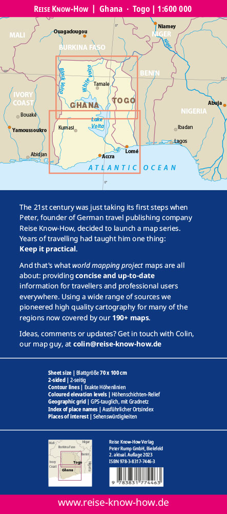 | Schlagworte | 2023 • Accra • Afrika • Ghana • Kumasi • Landkarte • Lomé • map • Reiseführer • Togo • Westafrika |