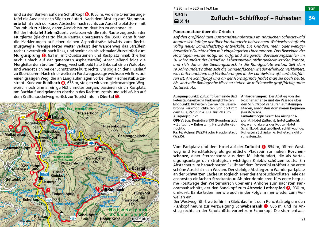 Aktuelle Wegbeschreibungen, aussagekräftige Höhenprofile und Wanderkärtchen mit eingetragenem Routenverlauf machen jede Wanderung leicht nachvollziehbar. GPS-Tracks stehen zum Download bereit. Zahlreiche Einkehrtipps sorgen für einen gelungenen Ausklang der Wandertage im nördlicheren Teil des Schwarzwalds.