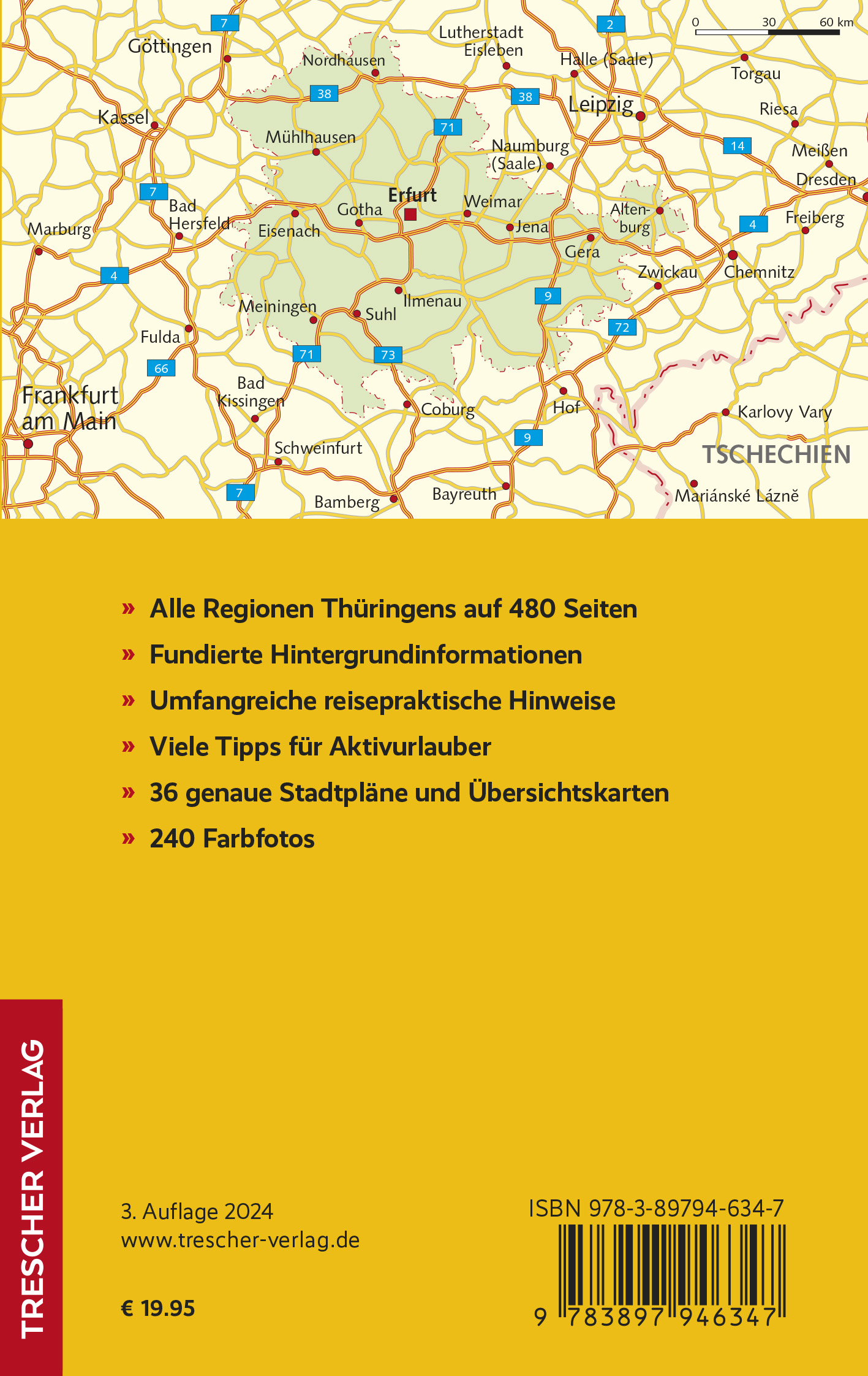 | Schlagworte | Altenburger Land • Bauhaus • Buchenwald • Eichsfeld • Eisenach • Erfurt • Jena • Kyffhäuser • Reiseführer • Rennsteig • Rhön • Saaletal • Thüringen • Thüringer Wald • Trescher-Reiseführer • Trescher Verlag • Vogtland • Wandern • Wartburg • Weimar • Werratal |