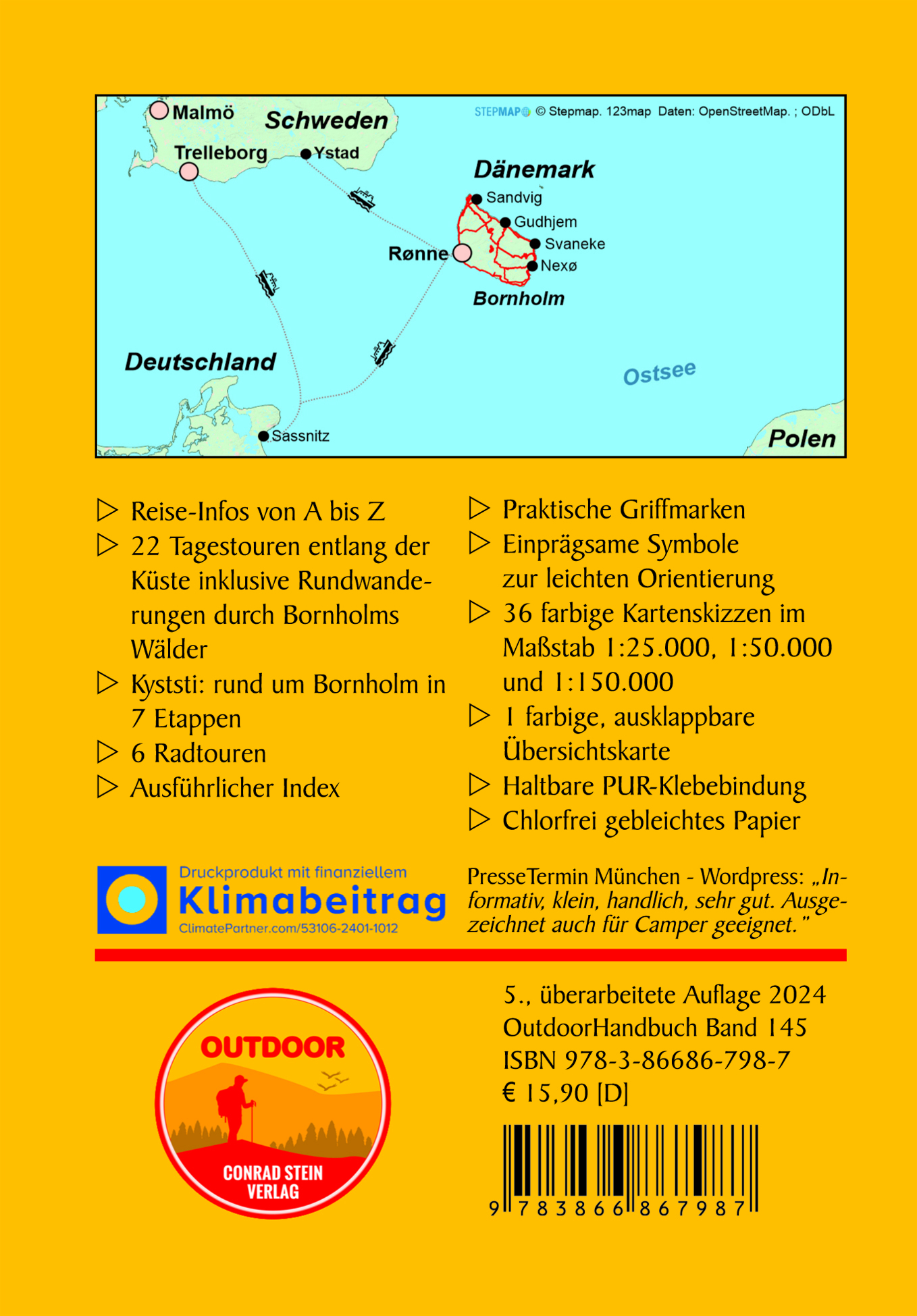 "Der handliche Wander- und Radführer für die dänische Insel mit dem schwedischen Charakter beschreibt 17 Tagestouren entlang der Küste und 5 Touren durch Bornholms Wälder sowie eine Inselumrundung in 7 Etappen." (ekz)