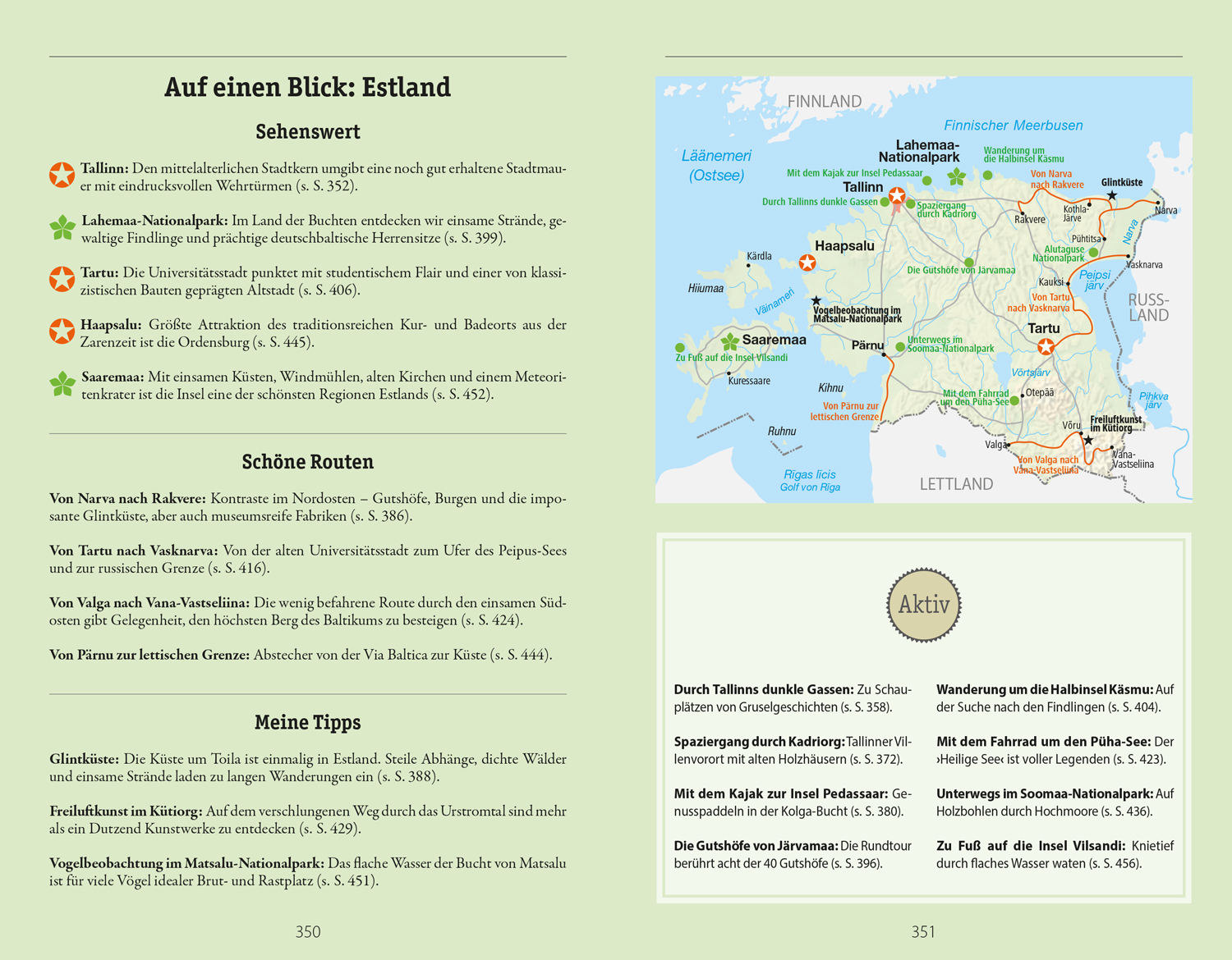 - Praktische Planungshilfe mit Tourenvorschlägen für Rundreisen durch die einzelnen Länder und das ganze Baltikum