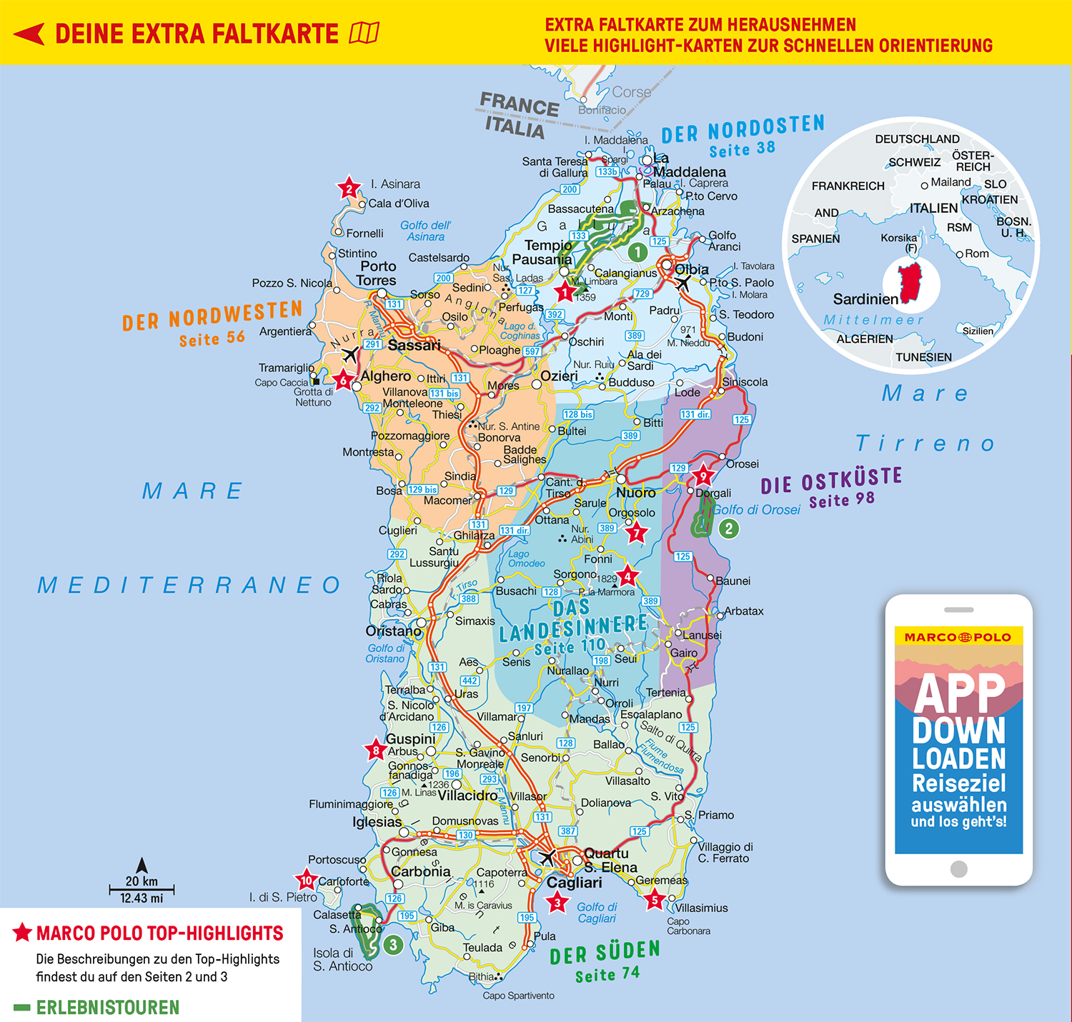 Traumhafte Strände und wilde Landschaften: Mit dem MARCO POLO Reiseführer nach Sardinien Du träumst von glasklarem Wasser und kilometerlangen Sandstränden? Dann bist du auf Sardinien genau richtig! Bei 1230 km Küstenlänge findest du das perfekte Plätzchen für einen Tag am Meer. Hier erholst du ich von den Wanderungen durch das wilde Hinterland oder entspannst nach dem Sightseeing in Cagliari. Mit den Empfehlungen aus dem MARCO POLO Reiseführer Sardinien entgeht dir keines der Highlights dieser wunderschönen Insel!