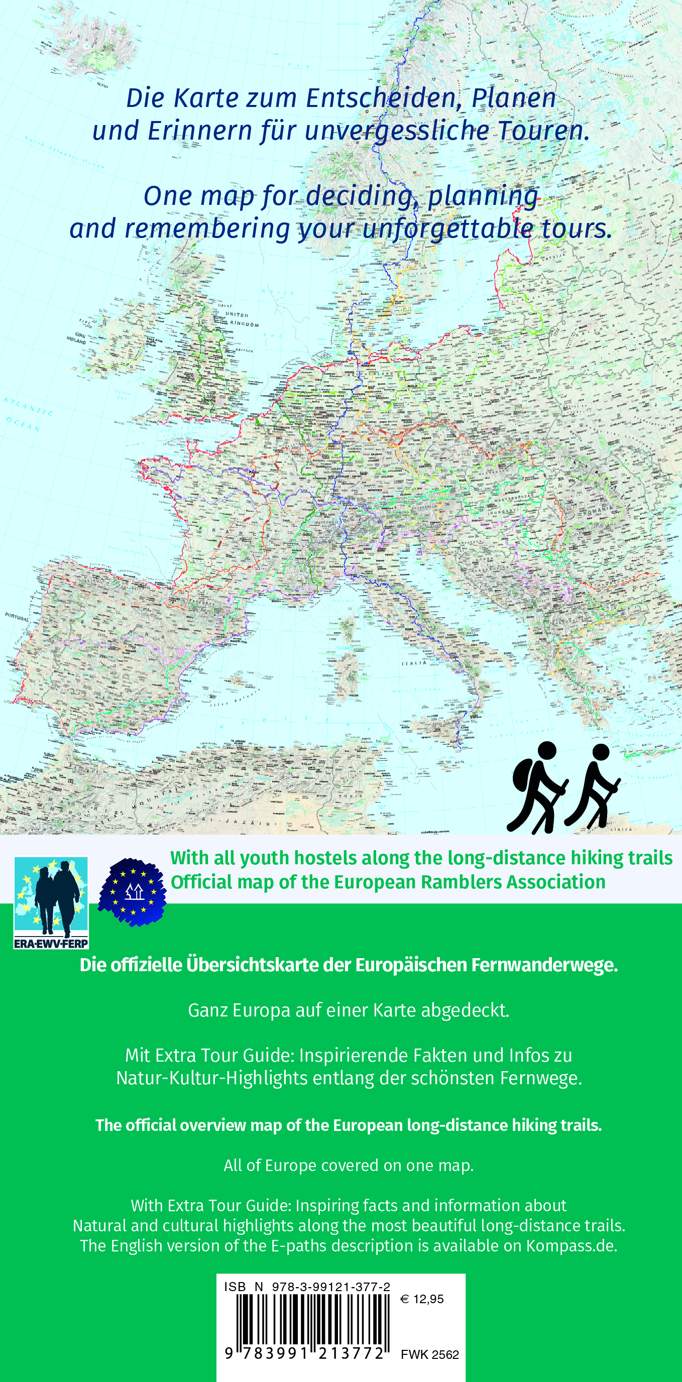 Inklusive Beiheft und allen Jugendherbergen entlang der E-Wege. Offizielle Karte der Europäischen Wandervereinigung (ERA).