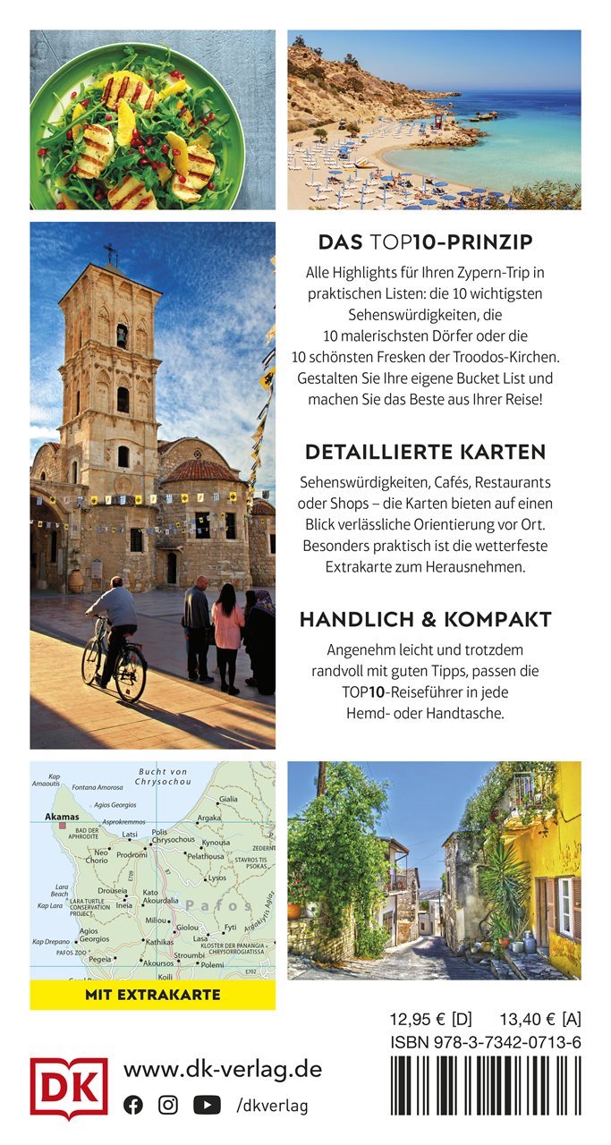 Die 10 beeindruckendsten Relikte in Kourion, die 10 schönsten Naturparadiese auf Zypern, die 10 besten Orte für Livemusik in Südwestzypern: Übersichtlich und kompakt präsentiert der TOP10 Zypern-Reiseführer alle wichtigen Sehenswürdigkeiten, Orte und Aktivitäten der reizvollen Mittelmeerinsel. Dank der praktischen TOP10-Listen - gegliedert nach Highlights, Themen und Regionen - können Sie einfach und bequem Ihre ganz persönliche Bucket List für den nächsten Zypern-Urlaub planen und umsetzen. Das handliche Format passt in jede Hand- und Hemdtasche - ideal zum Mitnehmen!