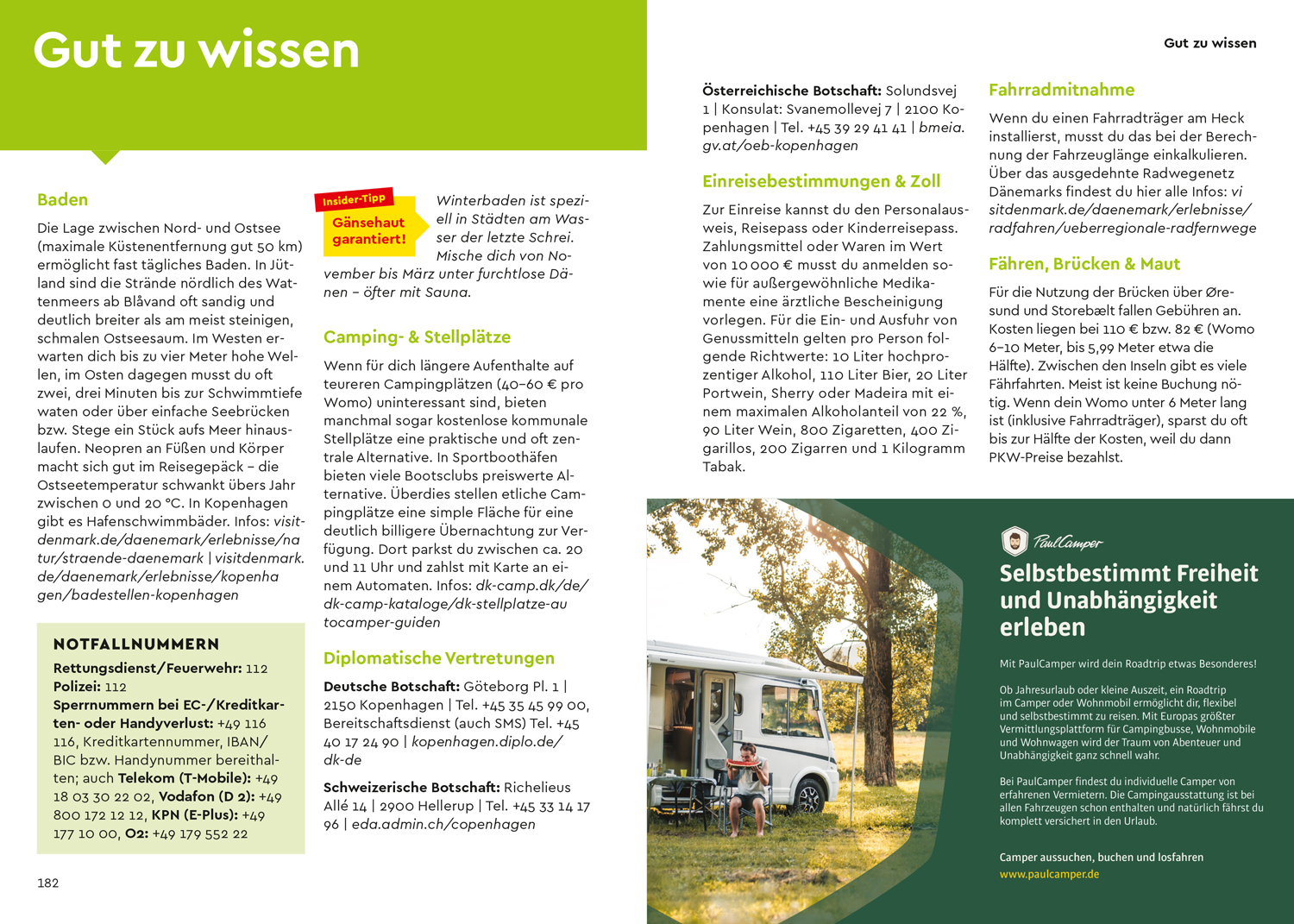 - Rundum-Sorglos-Paket: Wissenswertes zum Reiseziel wie das Freistehen, Anreiseinfos, Camper-Wörterbuch Dänisch, Packliste sowie Fahrzeugcheckliste