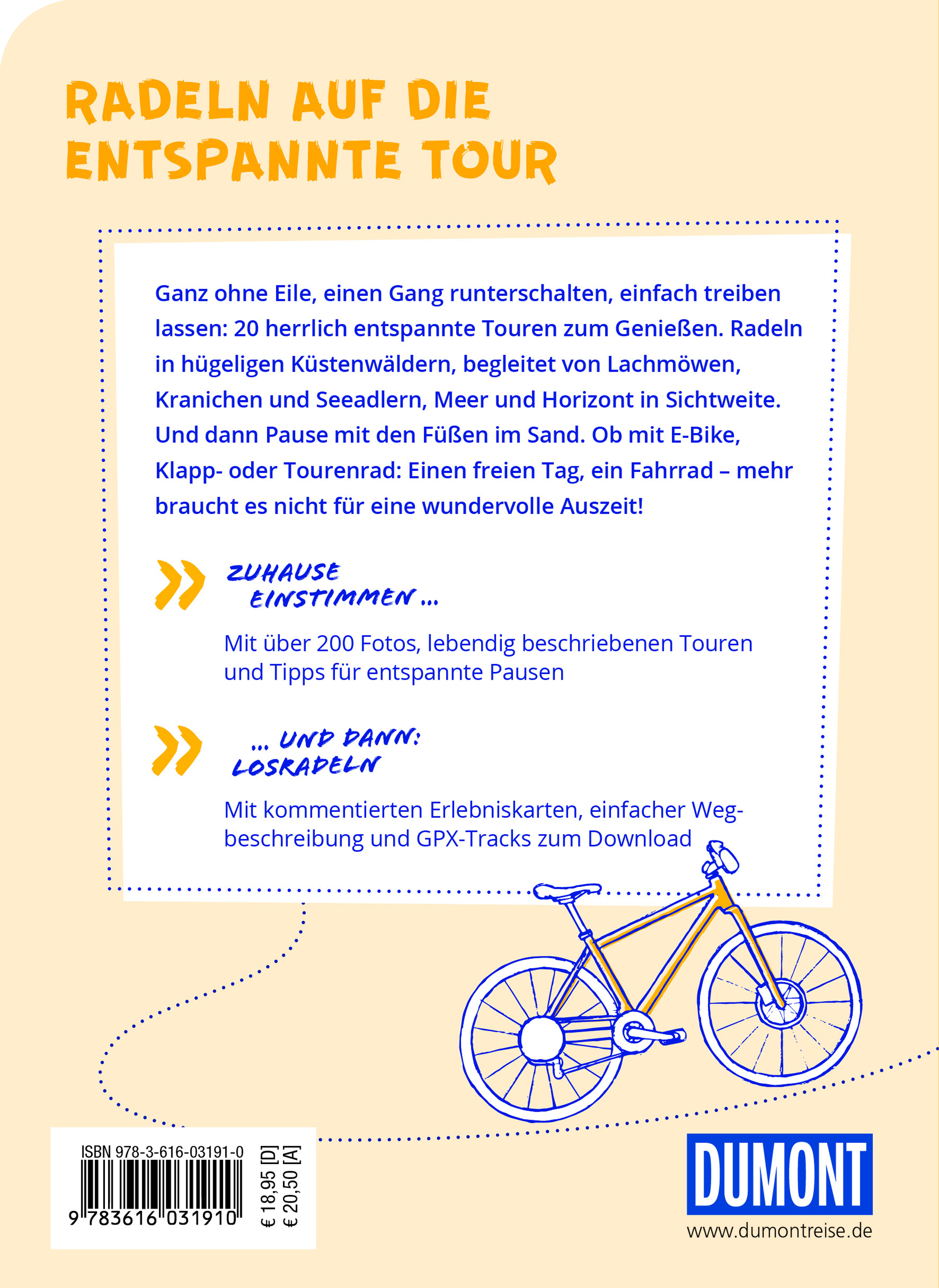 Ganz ohne Eile, einen Gang runterschalten, einfach mal treiben lassen: 20 herrlich entspannte Touren zum Genießen! Radeln in hügeligen Küstenwäldern, begleitet von Lachmöwen, Kranichen und Seeadlern, Meer und Horizont in Sichtweite. Und dann Pause mit den Füßen im Sand. Den Fahrtwind um die Nase spüren und dabei Besonderes am Wegesrand entdecken. Einen freien Tag, ein Fahrrad - mehr braucht es nicht für eine wundervolle Auszeit!