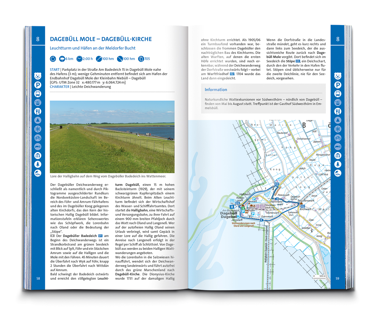 Das Buch enthält exakte Wegbeschreibungen und detaillierte Karten mit dem eingezeichneten Verlauf zu jeder Wanderung. Dabei ist auf einen Blick erkennbar, ob es sich beim Untergrund vorwiegend um einen normalen Weg, einen schmaleren Pfad oder sogar um einen unbefestigten Steig handelt. Start- und Zielpunkte sowie wichtige Wegpunkte sind deutlich markiert und erleichtern die Orientierung. Mit dabei sind die GPX-Daten zum Download. Angaben zur Schwierigkeit, Gehzeit, zu den Höhenmetern und Gesamtkilometern sowie zum Charakter der Touren sind übersichtlich und schnell erfassbar präsentiert. Zusätzliche Hinweise zu Einkehr- oder Bademöglichkeiten, Sehenswürdigkeiten, etc. und ob die Tour für Kinder geeignet ist machen die Auswahl und Planung der nächsten Wanderung spielend einfach.
