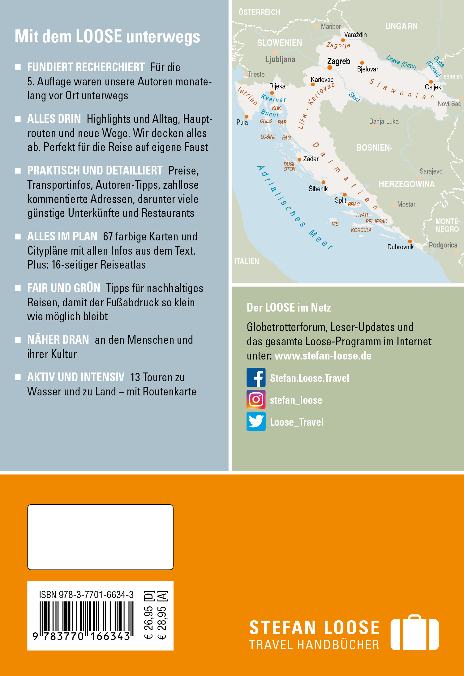 Kroatien ist ein klassisches Reiseland. Kein Wunder, ist die kroatische Küste doch ein touristisches Paradies mit mehr als tausend vorgelagerten Inseln, kleinen Buchten, imposanten Felsen und Stränden vor türkisleuchtendem Wasser. Dieses Buch wendet sich an alle, die Kroatien selbständig erkunden wollen, denn das Land besticht vor allem mit seiner Vielgestaltigkeit auf kleinem Raum: Das sanfthügelige Istrien mit seinen kleinen Bergdörfern und den hübschen Altstädten, die Kvarner Bucht mit ihren großen Inseln, der Hafenmetropole Rijeka und der noblen Opatija Riviera, das imposante Velebit-Gebirge mit seinen kargen Felsen, die türkisfarbenen Seen und Wasserfälle von Plitvice und Krka,die zahlreichen Inseln Dalmatiens, dazu die wunderschönen Altstädte von Split, Trogir, Sibenik und Dubrovnik sowie das quirlige Zadar. Doch es gibt auch ein anderes Kroatien, das den wenigsten Besuchern bekannt ist: Zagreb, die lebendige und faszinierende Hauptstadt mit viel Kultur und Nachtleben, gemütlichen Cafés und quirligem Zeitgeist, die Barockstädte Varazdin und Samobor, das ländliche Slawonien und der Naturpark Lonjsko Polje in dem die Zeit stehen geblieben zu sein scheint. Außerdem können Aktivitäten gut in den Urlaub integriert werden, sei es eine Wanderung in den Bergen, ein Tauchkurs oder eine Fahrradtour durch das Binnenland. Zahlreiche Tipps, Adressen und Hintergrundinformationen komplettieren die hohe Informationsdichte dieses Stefan Loose Travel Handbuchs.
