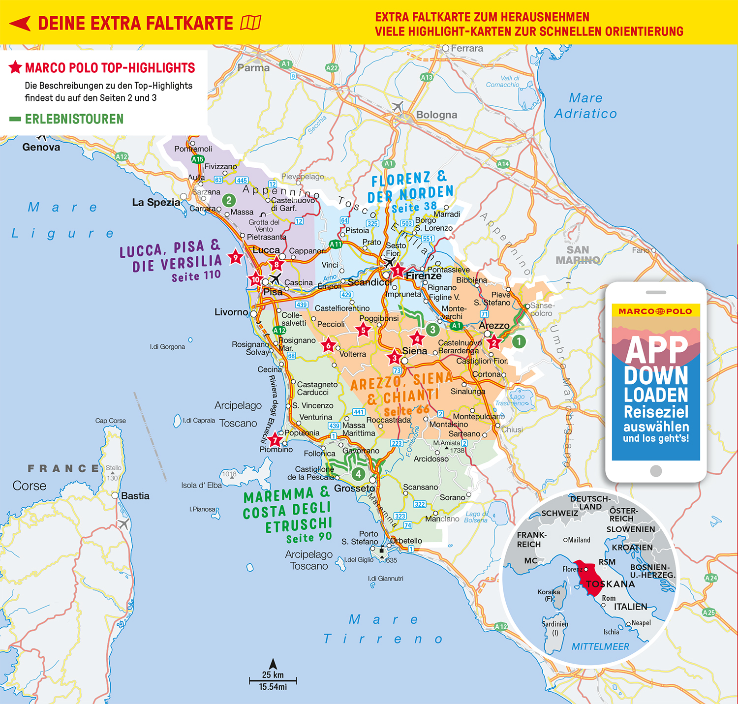 Die Spaziermeile in Viareggio lädt zum Bummeln ein und die mittelalterliche Alabasterstadt Volterra ist der Geheimtipp für Fans von Kunst, Etruskern und Vampirgeschichten. Egal, ob du einen Yoga-Kurs in einem alten Kloster machst oder in einer der Stranddiscos bis zum Morgen feierst, in deinem MARCO POLO Reiseführer findest du genau das Programm, wonach dir der Sinn steht.