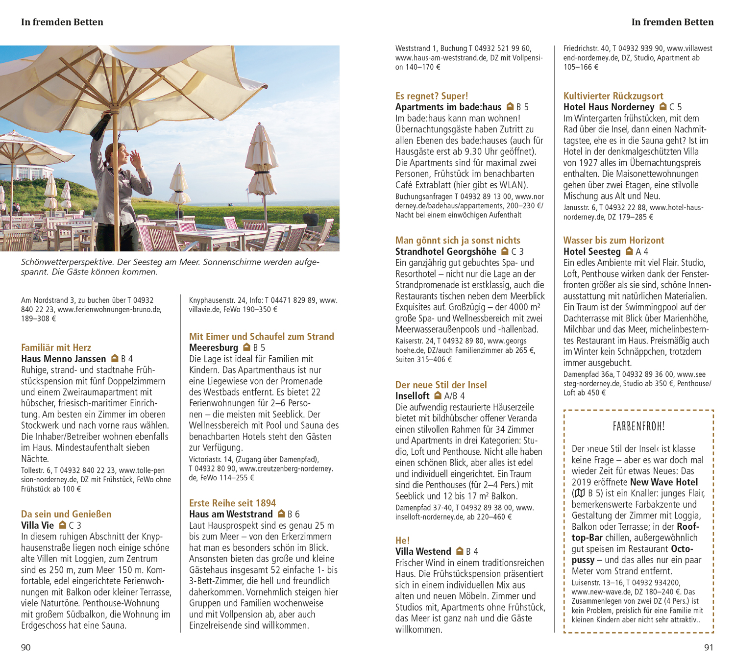 Mit den Übersichtskarten, genauen Stadtplänen und dem separaten großen Faltplan können Sie sich nach Lust und Laune über die Insel Norderney treiben lassen.