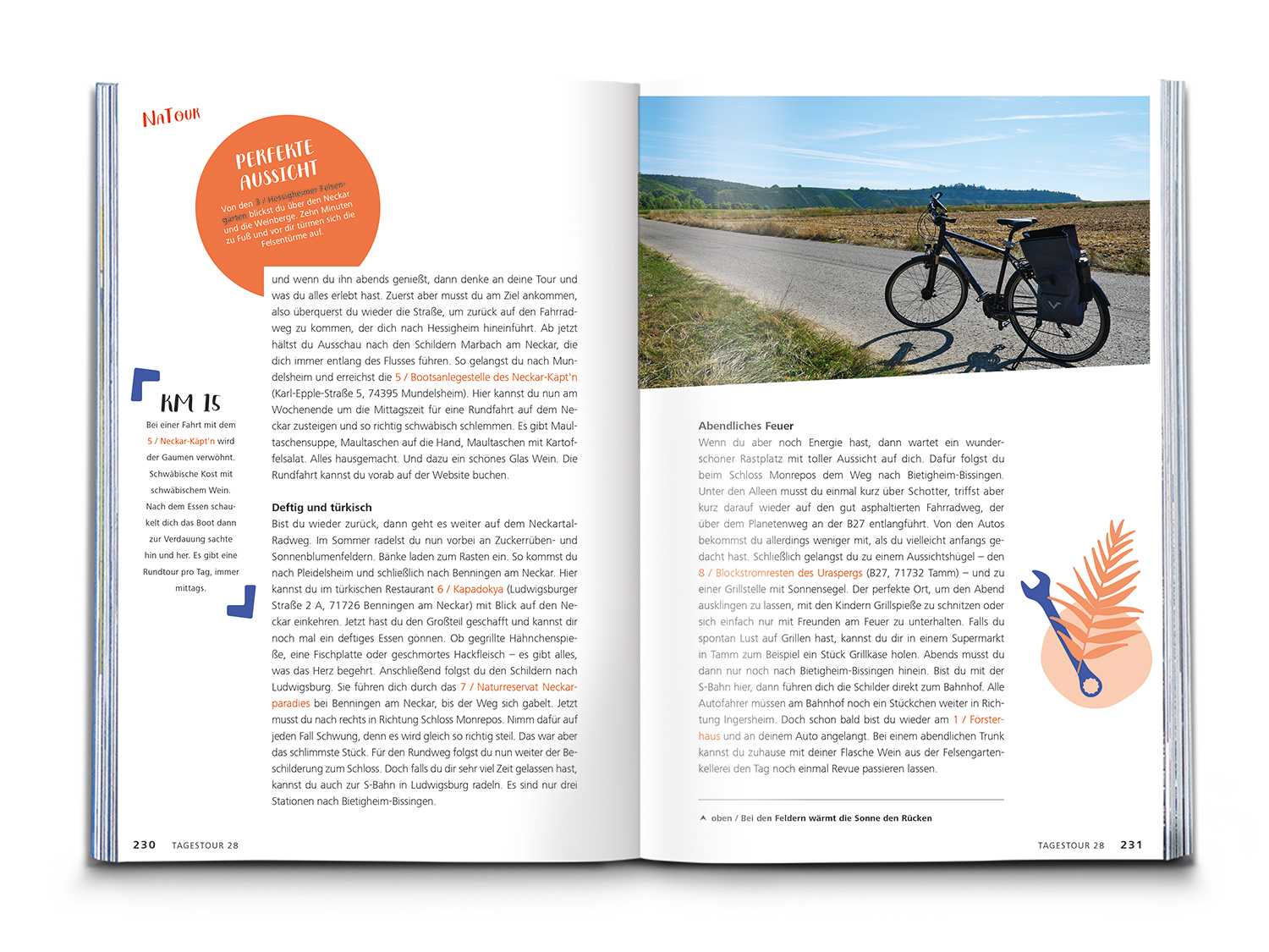 Bei der Tourenauswahl helfen Highlight-Listen für Kinder, E-Biker, Schlemmer und Ruhesuchende. Dank Eventkalender planst du deine Route immer zur besten Zeit und mit Radcheck und Packliste bist du bestens gerüstet fürs Heimat- oder Urlaubsabenteuer. Jede Tour wird ergänzt um Einkehrtipps, Anreiseinfos, Höhenprofil und Tourenkarte.