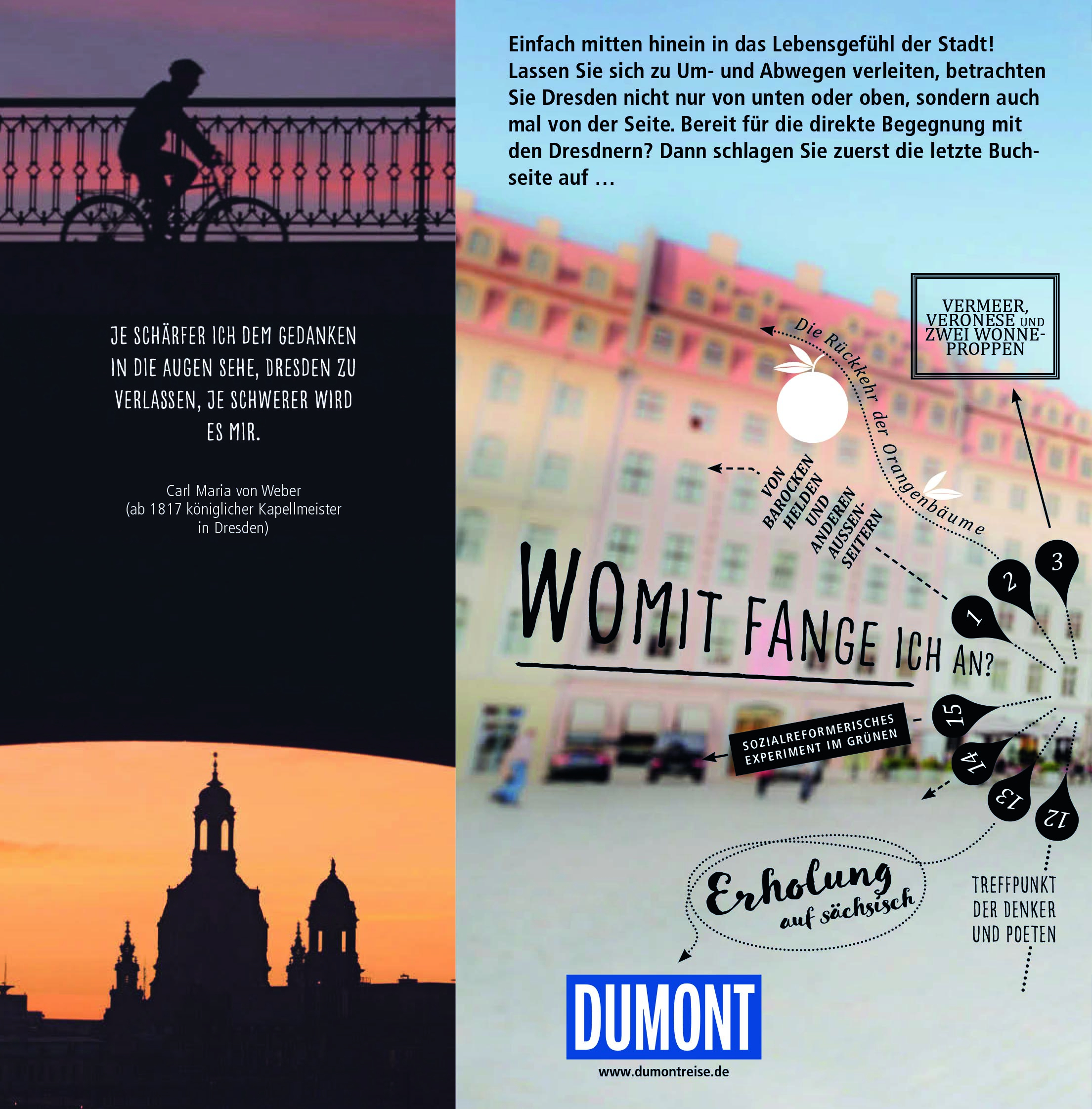 Mit den 15 »Direkt-Kapiteln« des Reiseführers von Siiri Klose können Sie sich zwanglos unter die Dresdner mischen, direkt in das Stadtleben eintauchen und die Highlights und Hotspots kennenlernen: neue Szene- und alte Villenviertel, den Großen Garten und die Elbschlösser, die Gartenstadt Hellerau und die Sommerresidenz Pillnitz, Besenwirtschaften und Himmelsleitern. In eigenen Kapiteln erfahren Sie, wo es sich in fremden Betten gut schläft, wo Sie glücklich satt werden, wohin die Dresdner zum Stöbern und Entdecken gehen und wohin es sie zieht, wenn die Nacht beginnt.