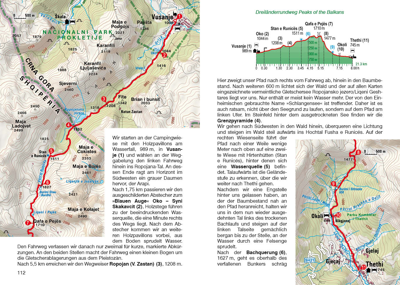 Der Dreiländerrundweg »Peaks of the Balkans« ist eine der letzten Abenteuerrouten durch Europa. Die Wege führen auf alten Hirten- und Handelspfaden durch die unberührte Bergwelt des Prokletije-Gebirges, vorbei an rauschenden Wasserfällen und kristallklaren Bergseen, vielleicht sogar an Spuren von Wölfen oder Bären. In den alten Dörfern scheint die Zeit stehen geblieben zu sein, und wer zwischendurch einmal den Komfort von mitteleuropäischem Bergtourismus vermisst, wird durch die herzliche Gastfreundschaft der Einheimischen mehr als entschädigt. 2011 wurde die Trekkingroute eingeweiht, um den Menschen in der einst vom Krieg gebeutelten Region eine Zukunft zu ermöglichen und die Kultur zu bewahren.