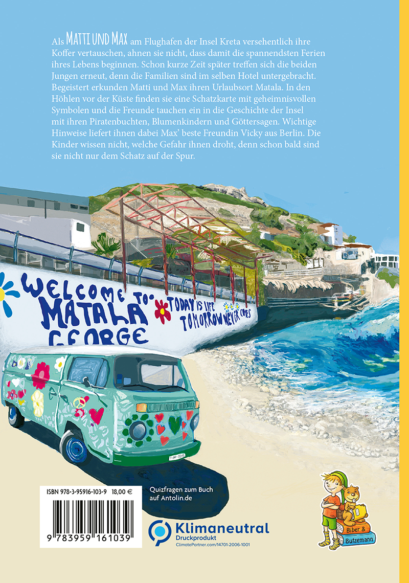 Als Matti und Max am Flughafen der Insel Kreta versehentlich ihre Koffer vertauschen, ahnen sie nicht, dass damit die spannendsten Ferien ihres Lebens beginnen. Schon kurze Zeit später treffen sich die beiden Jungen erneut, denn die Familien sind im selben Hotel untergebracht. Begeistert erkunden Matti und Max ihren Urlaubsort Matala. In den Höhlen vor der Küste finden sie eine Schatzkarte mit geheimnisvollen Symbolen und die Freunde tauchen ein in die Geschichte der Insel mit ihren Piratenbuchten, Blumenkindern und Göttersagen. Wichtige Hinweise liefert ihnen dabei Max' beste Freundin Vicky aus Berlin. Die Kinder ahnen nicht, welche Gefahr ihnen droht, denn schon bald sind sie nicht nur dem Schatz auf der Spur.
