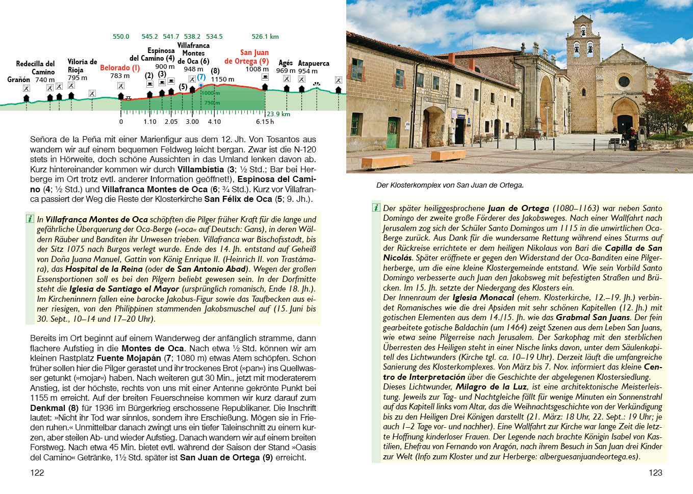 Der Jakobsweg ist ein Natur- und Kulturerlebnis. Auf fast 900 Kilometern führt er durch unterschiedlichste Landschaften und zu kulturhistorischen Stätten. Sowohl die landschaftlichen wie auch historischen Sehenswürdigkeiten stellt der Pilgerführer vor, er beschreibt regionale Eigenheiten, lokale Fiestas und kulinarische Spezialitäten.