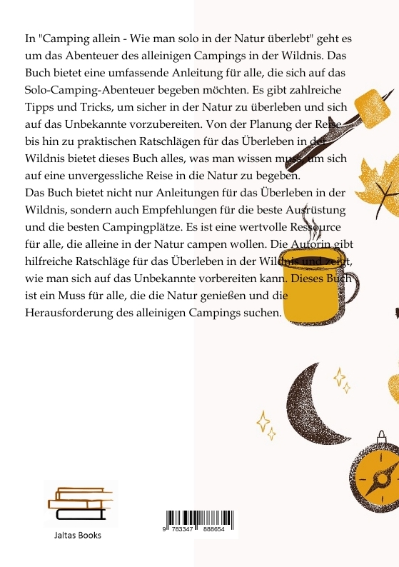 In "Camping allein - Wie man solo in der Natur überlebt" geht es um das Abenteuer des alleinigen Campings in der Wildnis. Das Buch bietet eine umfassende Anleitung für alle, die sich auf das Solo-Camping-Abenteuer begeben möchten. Es gibt zahlreiche Tipps und Tricks, um sicher in der Natur zu überleben und sich auf das Unbekannte vorzubereiten. Von der Planung der Reise bis hin zu praktischen Ratschlägen für das Überleben in der Wildnis bietet dieses Buch alles, was man wissen muss, um sich auf eine unvergessliche Reise in die Natur zu begeben.Das Buch bietet nicht nur Anleitungen für das Überleben in der Wildnis, sondern auch Empfehlungen für die beste Ausrüstung und die besten Campingplätze. Es ist eine wertvolle Ressource für alle, die alleine in der Natur campen wollen. Die Autorin gibt hilfreiche Ratschläge für das Überleben in der Wildnis und zeigt, wie man sich auf das Unbekannte vorbereiten kann. Dieses Buch ist ein Muss für alle, die die Natur genießen und die Herausforderung des alleinigen Campings suchen.
