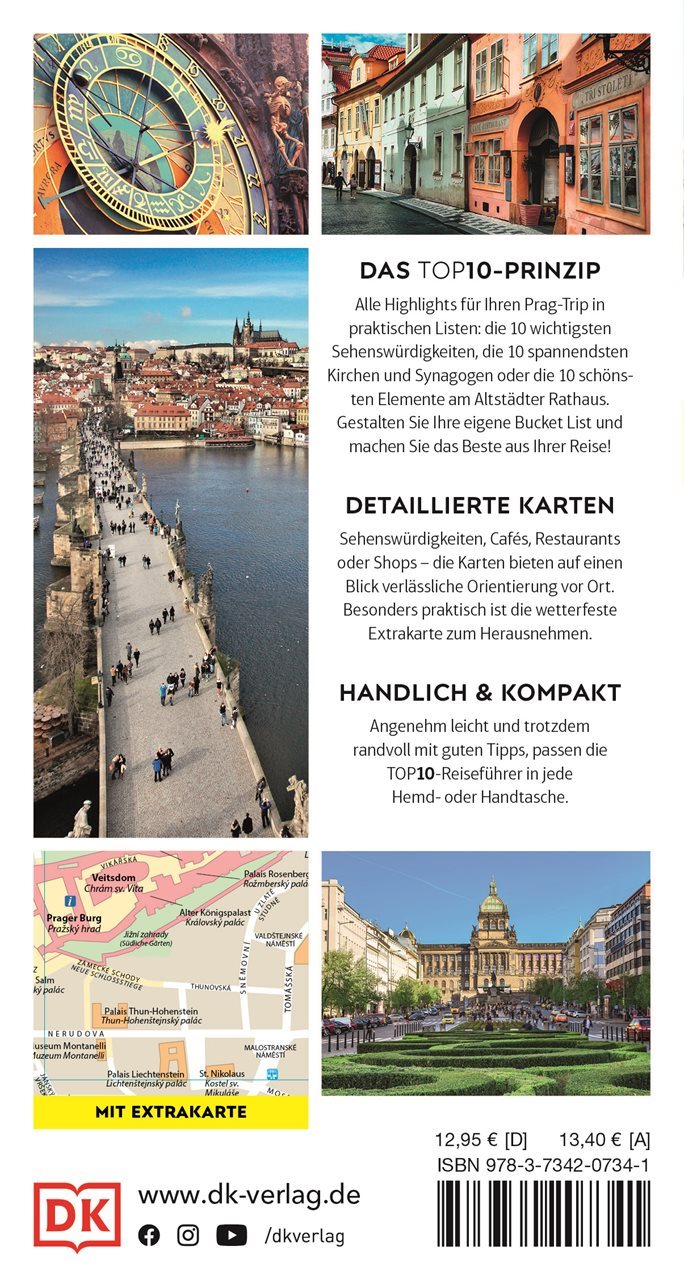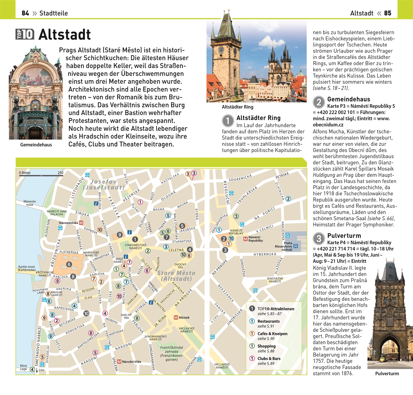 Spazieren Sie durch das Labyrinth aus winzigen Gassen in der historischen Altstadt, fahren Sie mit der Standseilbahn hoch auf den Petrín mit seiner herrlichen Aussicht auf die Dächer und Türme der Stadt und verarbeiten Sie Ihre Eindrücke in einer der legendären Kneipen im Herz der Neustadt im TOP10 Prag-Reiseführer werden die einzelnen Stadtteile und Abstecher ins Umland Prags übersichtlich und ausführlich porträtiert. Stimmungsvolle Fotos und detaillierte Stadtteil-Karten zeigen berühmte Sehenswürdigkeiten, charmante Stadtviertel sowie Restaurant-, Shopping- oder Tourenvorschläge auf einen Blick.