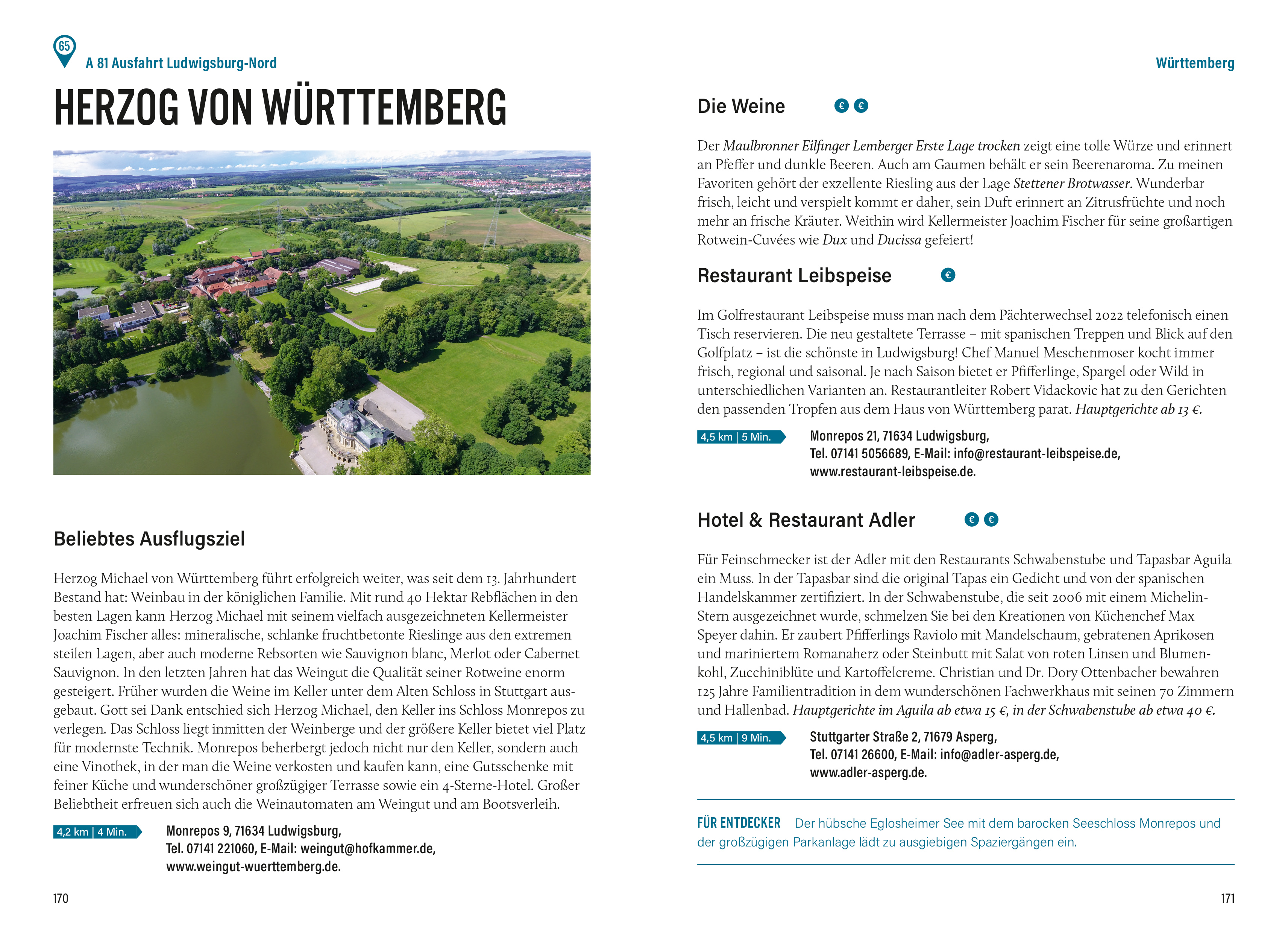 Entlang detaillierter Karten lässt sich die perfekte Route finden, auf der jedes Ziel maximal 15 Minuten von der Autobahn entfernt liegt. Über den Weingenuss hinaus empfiehlt Natalie Lumpp auch die schönsten Ausflugsziele der Umgebung, um Ihre Reise unvergesslich zu machen.