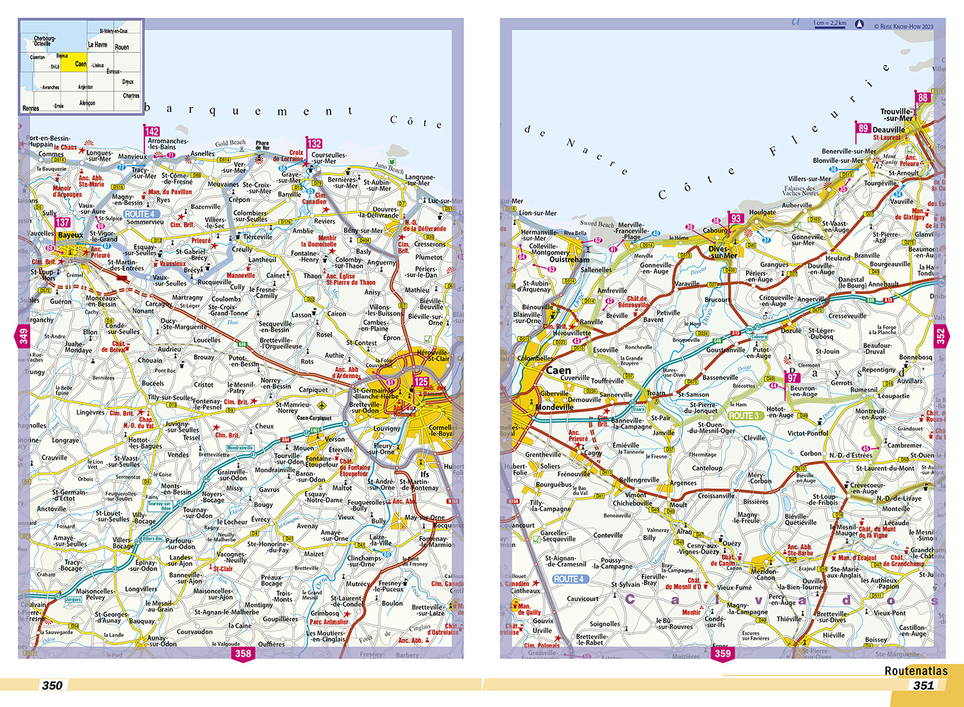 - Stadtpläne und Übersichtskarten zu Rouen, Évreux, Le Havre, Honfleur, Lisieux, Argentan, Falaise, Caen, Bayeux, Cherbourg-Octeville, Coutances, Granville, Avranches, Alencon, Sées, Bernay, Dieppe