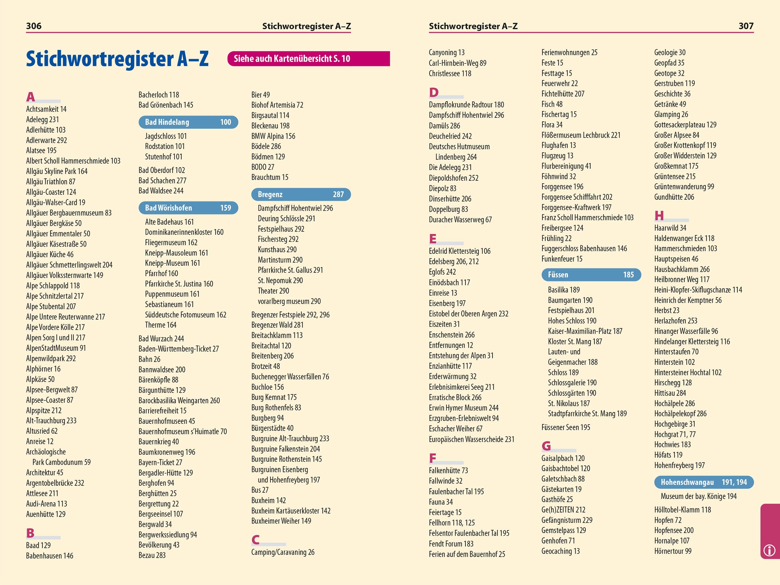 - Stichwortregister A-Z ,Griffmarken, Seiten- und Kartenverweise.