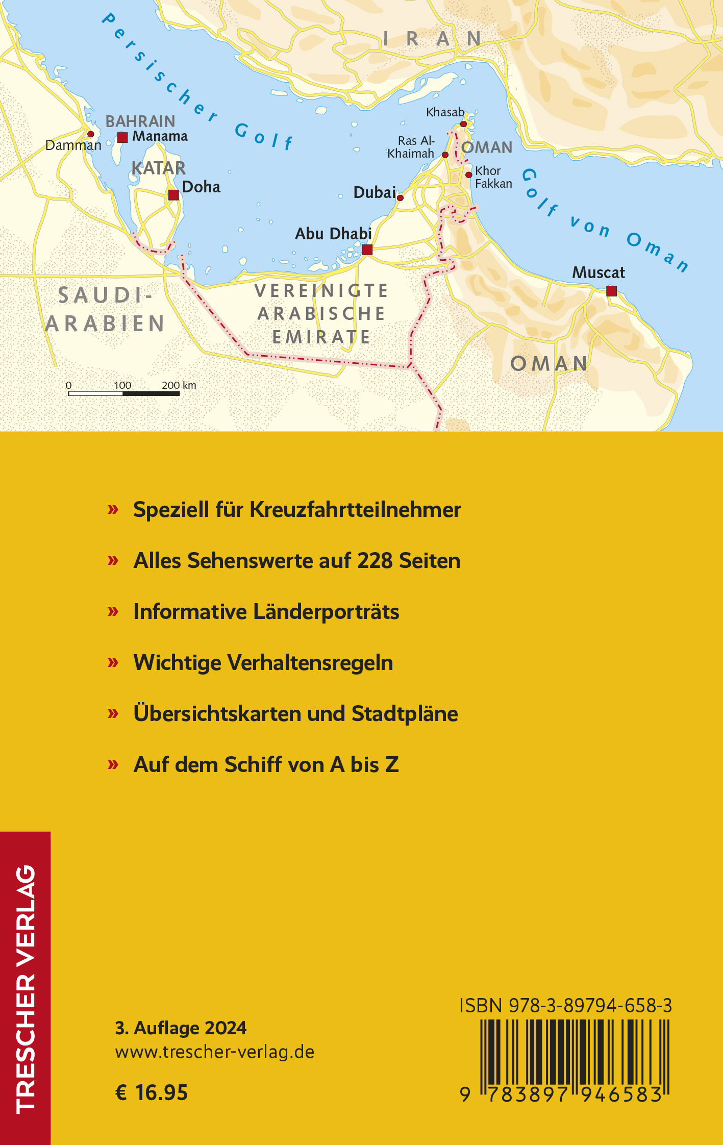 | Schlagworte | Burj Khalifa • Doha • Empfehlung • Fudschaira • Fujairah • Hadschar-Gebirge • Kreuzfahrtführer • Kreuzfahrtschiffe • Manama • Muscat • Naher Osten • Orientkreuzfahrten • Persischer Golf • Qatar • Ra's al-Chaima • Reisetipps • Reisevorbereitung • Routen • Schardscha • Trescher-Reiseführer • Trescher Verlag • Vereinigte Arabische Emirate |