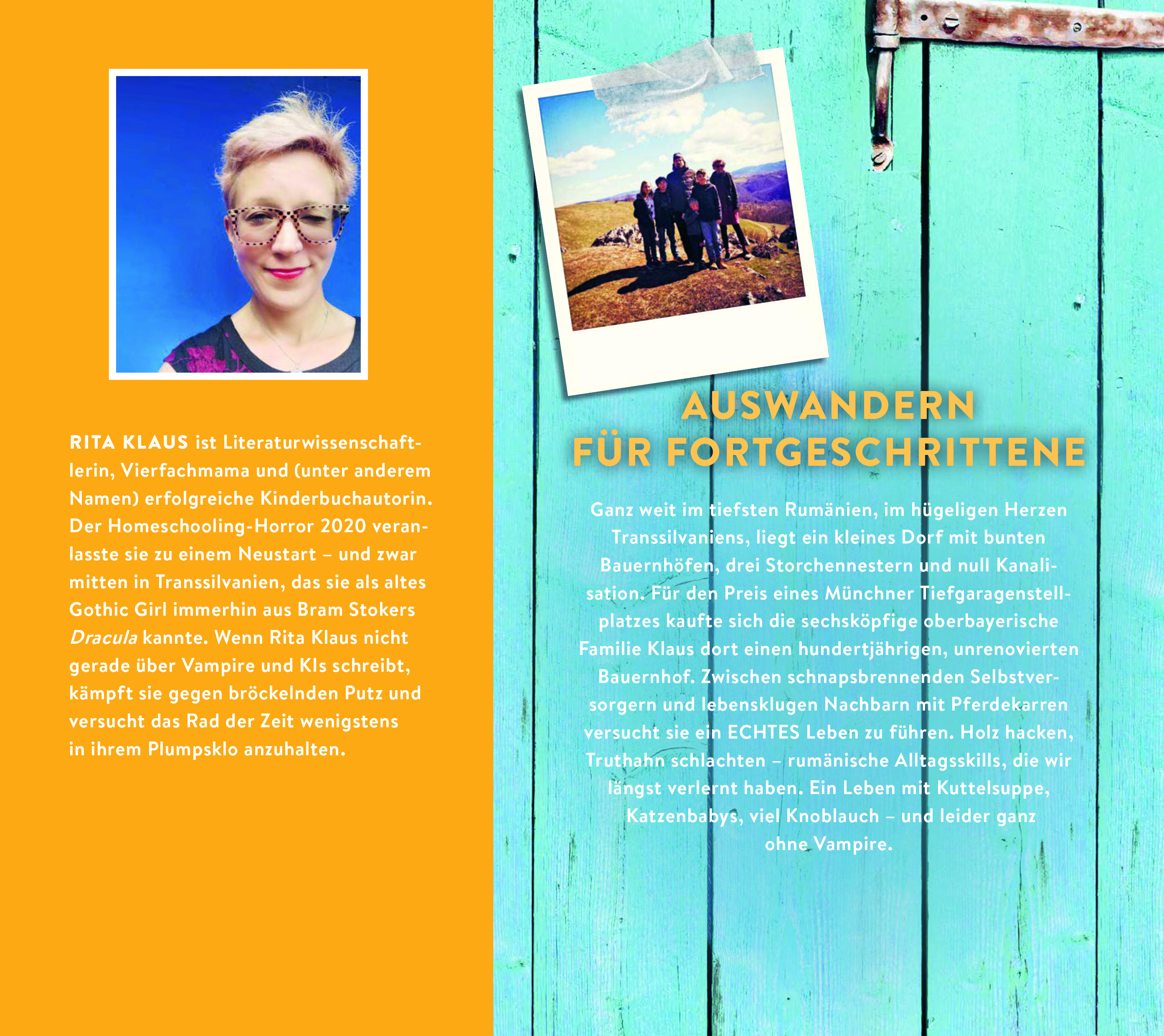 lt;p>GANZ WEIT IM TIEFSTEN RUMÄNIEN, im hügeligen Herzen Transsilvaniens, liegt ein kleines Dorf mit bunten Bauernhöfen, drei Storchennestern und null Kanalisation. Bei Vollmond heult hinter der Kirche ein einsamer Wolf, und manchmal heulen die Straßenhunde mit. Für den Preis eines Münchner Tiefgaragenstellplatzes kaufte sich die sechsköpfige oberbayerische Familie Klaus dort einen hundertjährigen, unrenovierten Bauernhof. Zwischen schnapsbrennenden Selbstversorgern und lebensklugen Nachbarn mit Pferdekarren versucht die Familie ein ECHTES Leben zu führen. Holz hacken, Truthahn schlachten, Spinat einkochen - hier lernt sie rumänische Alltagsskills, die wir längst verlernt haben. Ein Leben mit Kuttelsuppe, Katzenbabies, sehr viel Knoblauch - und leider so ziemlich ohne Vampire.