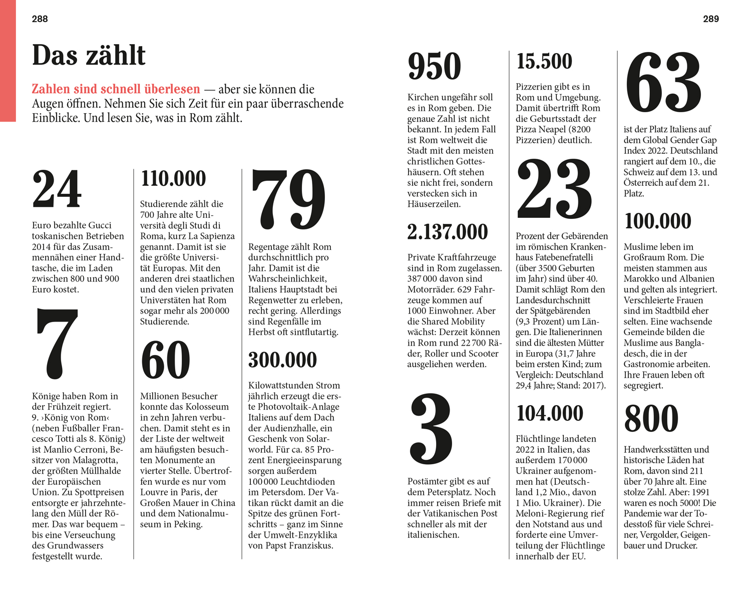 - Die Karten: 9 Citypläne, 15 Tourenkarten, Übersichtskarte mit den Highlights von Rom, Schnellüberblick zu jeder Region plus eine große Reisekarte