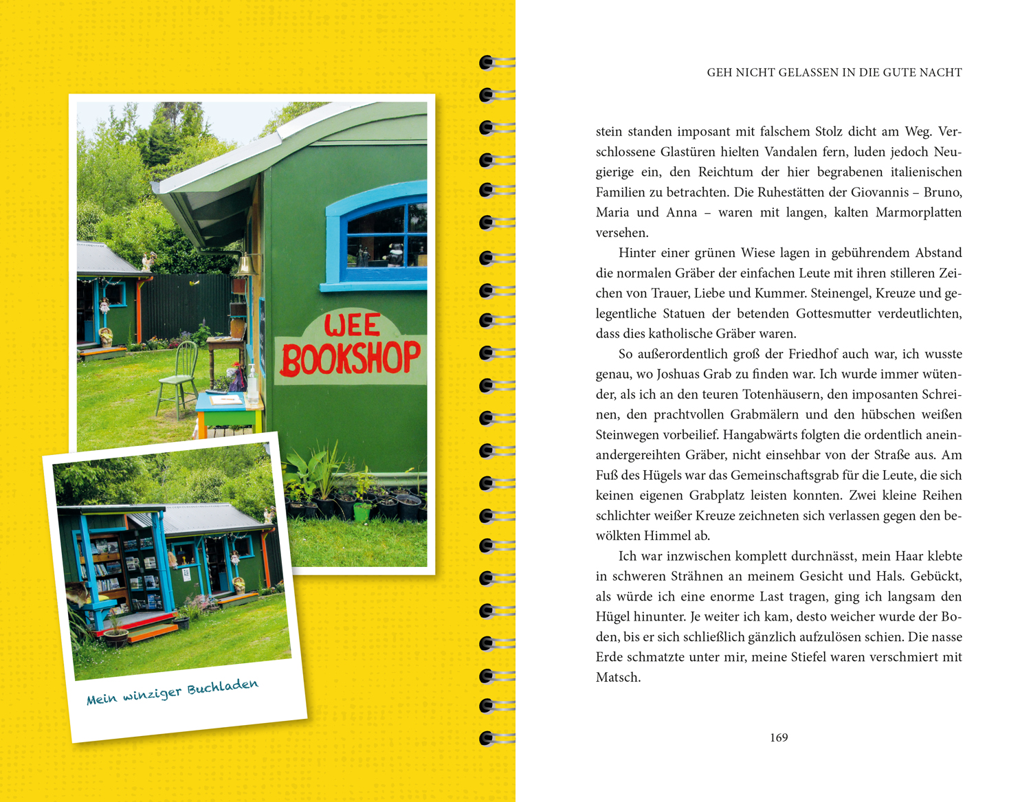 AM ENDE DER WELT,GANZ WEIT IM SÜDEN NEUSEELANDS, steht ein winzig kleiner Buchladen. Er gehört einer Frau mit einer unfassbaren Lebensgeschichte: Ruth Shaw verlor ihr Kind und ihre große Liebe. Sie segelte jahrelang über den Pazifik, wurde von Piraten überfallen, wegen Glücksspiels verhaftet, war Streetworkerin und Köchin für einen Erzbischof. Heute verkauft sie Bücher im abgelegenen Fiordland. Oder verschenkt sie. In ihren Memoiren verwebt sie Anekdoten über die Menschen, die ihren Buchladen besuchen, mit den bittersüßen Geschichten aus ihrem abenteuerlichen Leben. Ein Buch über Trauer und Verlust, aber auch über die Liebe - zum Leben, zur Welt der Bücher und zur Weite des Ozeans.