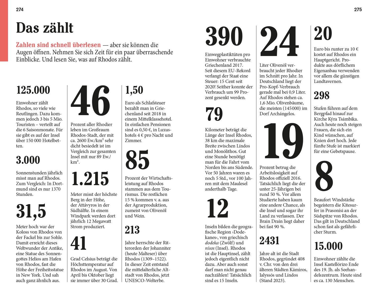 - Die Karten: 12 Citypläne, 23 Touren- und Detailkarten, Übersichtskarte mit den Highlights von Rhodos, Schnellüberblick zu jeder Region plus eine große Reisekarte