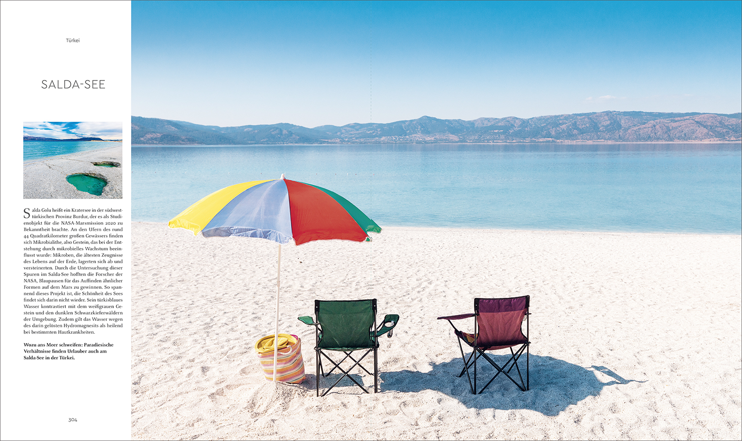 Prächtige Bilder mit »Seeblick« sowie stimmungsvolle Texte inspirieren dazu, endlich mal wieder seewärts zu fahren. So trifft man auf legendäre Raddampfer und Wasserschlösser genauso wie auf den Mir-See in Kroatien, der nur durch eine Klippe vom offenen Meer getrennt ist. Und auch die Azoren sind mit von der Partie, wo der spektakulär gelegene Kratersee Lagoa do Fogo in unberührter Natur geheimnisvoll vor sich hin glitzert.