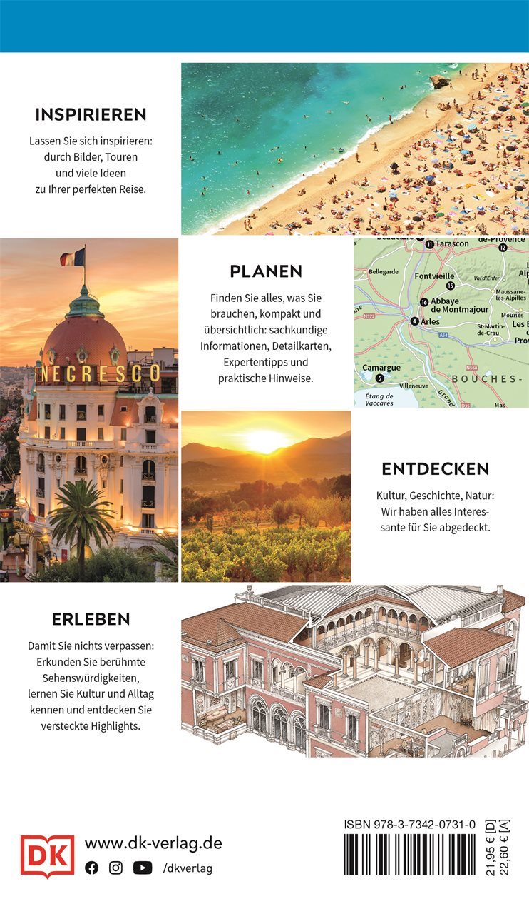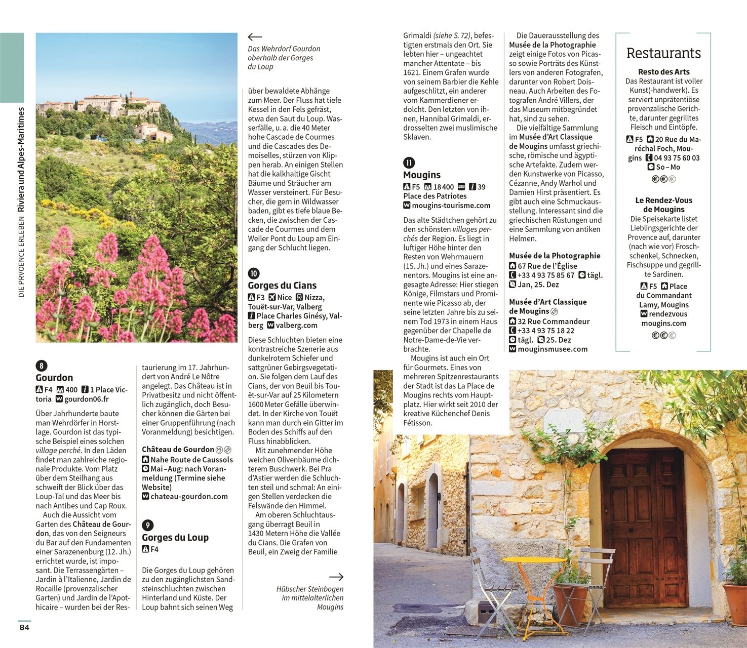Ausgewählte Top-Themen: Auf den bildgewaltigen Themenseiten des Provence & Côte d'Azur-Reiseführers stehen charakteristische Besonderheiten im Fokus. Entdecken Sie die besten Weine der Provence oder die köstliche Küche mit frischesten Zutaten aus der Region. Auch Kunst- und Architekturfans kommen nicht zu kurz: in der Provence