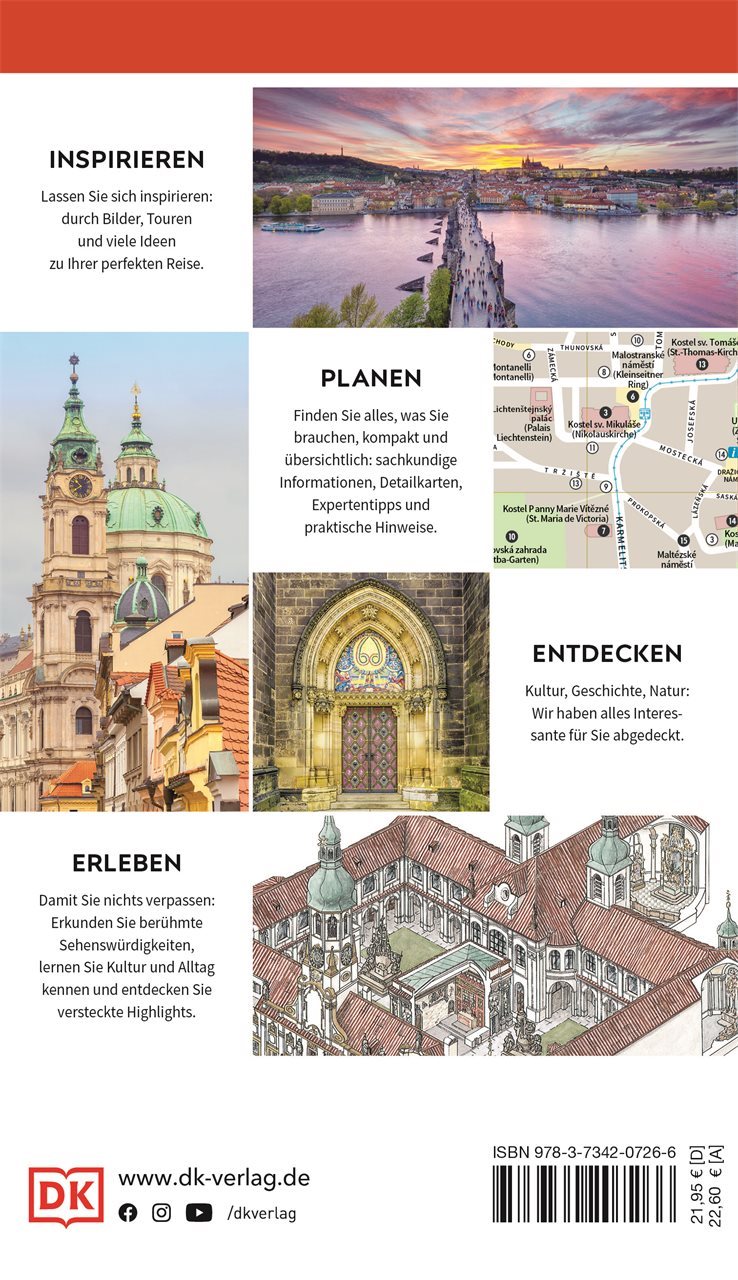 Die majestätische Pracht der gotischen Karlsbrücke bewundern, den Ausblick von der Prager Burg hoch über der Moldau genießen oder auf dem traumhaft schönen Altstädter Ring spazieren Prag ist einfach magisch. Mit ausführlichem Expertenwissen, den berühmten 3-D-Aufrisszeichnungen, einer wetterfesten Extra-Karte zum Herausnehmen und über 350 stimmungsvollen Fotos können Sie die Stadt Ihrer Träume hautnah erleben. Dieser Reiseführer Prag ist der ultimative Begleiter für alle Kulturinteressierten!
