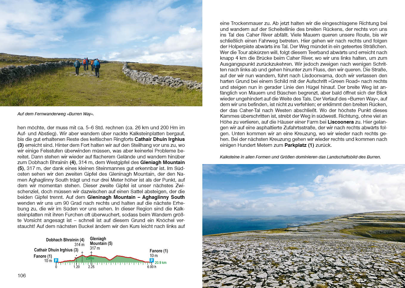 Irland, die sagenumwobene grüne Insel, bietet sagenhafte Landschaften. Sie sind wie geschaffen fürs Wandern. In der Republik Irland begeistern die einsamen Hügel der Wicklow Mountains bei Dublin, die gebirgigen Halbinseln im Südwesten, die ausgedehnte Küste mit schwindelerregenden Klippen, die zerklüfteten Berge von Connemara oder die eigentümliche Karstlandschaft des Burren. In Nordirland locken die gut erschlossenen Mourne Mountains und Sperrin Mountains zu schönen Wanderungen.