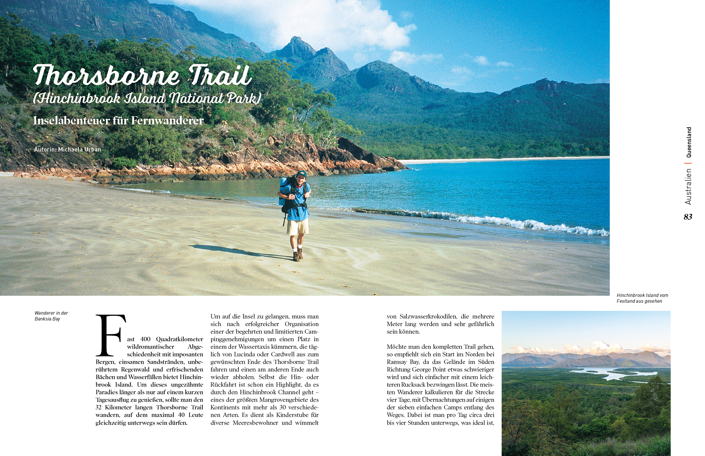 Der Bundesstaat Queensland steht in Australien in dieser Ausgabe besonders im Fokus. Wir besuchen das Great Barrier Reef und den Noosa National Park, wandern auf Hinchinbrook Island, unternehmen mit Corinna Melville einen Roadtrip durch den Norden Queenslands und begleiten Jochen Müssig auf seiner Regenwald-Tour durch den Daintree National Park, bevor wir zum Abschluss den Bundesstaat verlassen und in South Australia die Westküste der Eyre Peninsula entdecken. Genießen Sie die Leserreise durch DownUnder!