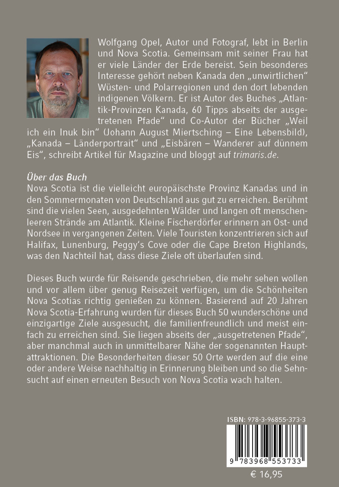 Wolfgang Opel, Autor und Fotograf, lebt in Berlin und Nova Scotia. Gemeinsam mit seiner Frau hat er viele Länder der Erde bereist. Sein besonderes Interesse gehört neben Kanada den „unwirtlichen“ Wüsten- und Polarregionen und den dort lebenden indigenen Völkern. Er ist Autor des Buches „Atlantik-Provinzen Kanada, 60 Tipps abseits der ausgetretenen Pfade“ und Co-Autor der Bücher „Weil ich ein Inuk bin“ (Johann August Miertsching – Eine Lebensbild), „Kanada – Länderportrait“ und „Eisbären – Wanderer auf dünnem Eis“, schreibt Artikel für Magazine und bloggt auf trimaris.de.