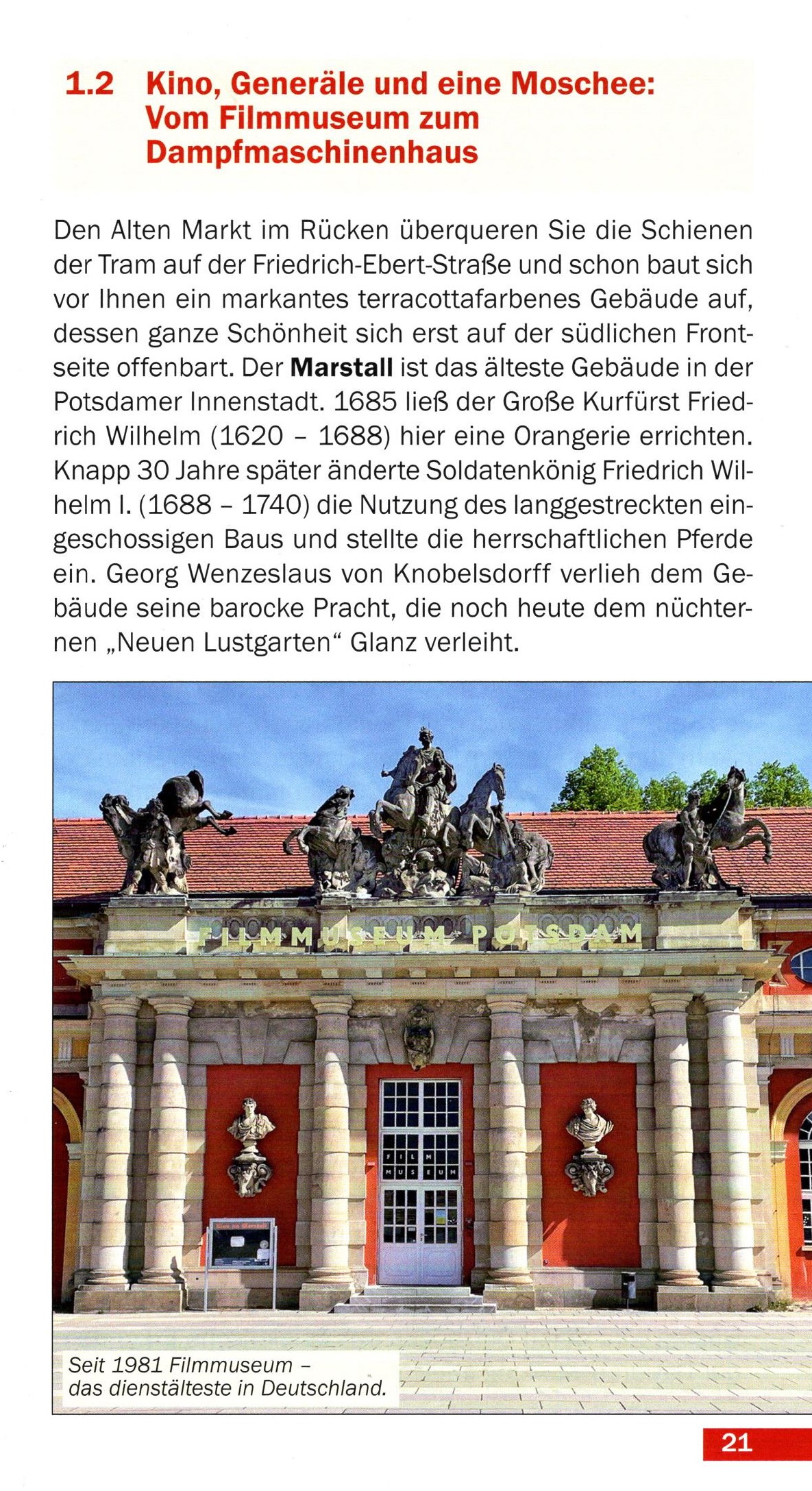 Potsdam - Der zweite Tag? Ja, weil der erst Tag den Schlössern und Gärten in der Brandenburgischen Landeshauptstadt gehört. Nach der Zeitreise durch die glanzvollen Residenzen der preußischen Königinnen und Könige laden die Autoren zu einem lebendigen Spaziergang durch die Geschichte, Architektur, Kunst und Natur Potsdams ein. Auf dem Weg begegnen die Spaziergänger vielen großen Namen und Menschen, die mit ihren Visionen und ihrer Tatkraft diese Stadt lebenswert mach(t)en.