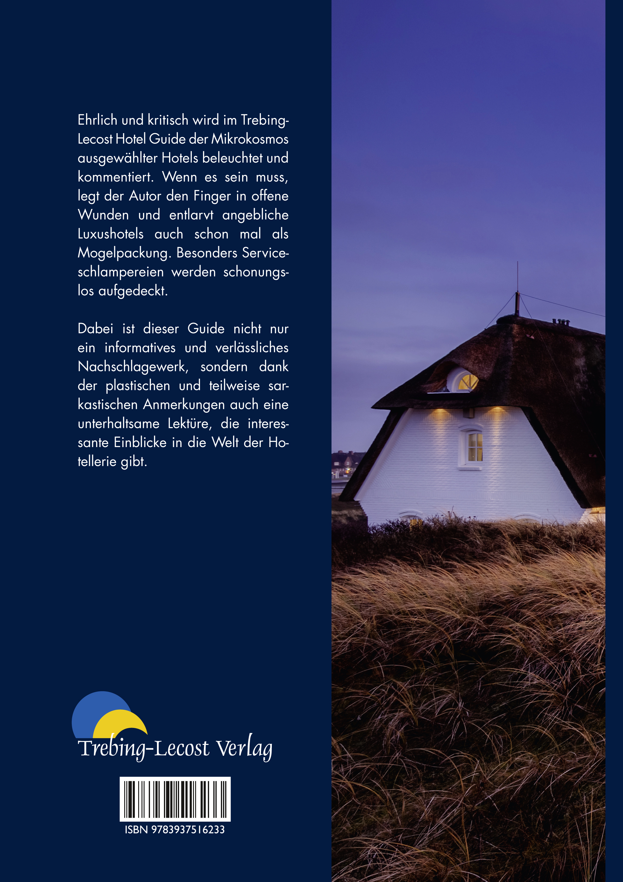 Ehrlich und kritisch wird im Trebing-Lecost Hotel Guide der Mikrokosmos ausgewählterHotels beleuchtet und kommentiert. Wenn es sein muss, legt der Autor den Finger in offeneWunden und entlarvt angebliche Luxushotels auch schon mal als Mogelpackung. BesondersServiceschlampereien werden schonungslos aufgedeckt.Dabei ist dieser Guide nicht nur ein informatives und verlässliches Nachschlagewerk, sonderndank der plastischen und teilweise sarkastischen Anmerkungen auch eine unterhaltsameLektüre und gibt interessante Einblicke in die Welt der Hotellerie.