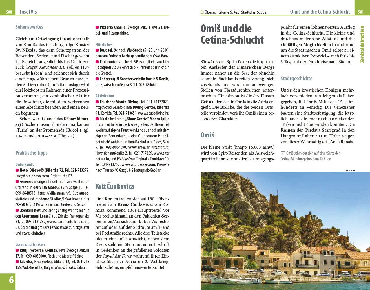 Jedes Kapitel des Reiseführers beginnt mit einer Doppelseite, auf der die Inhalte mit einer Übersichtskarte der Region, Highlights und Seitenverweisen vorgestellt werden. Farblich auf die Kapitel abgestimmte Seitenzahlkästchen erleichtern die Orientierung im Buch. Natürlich enthält der Reiseführer die bewährten und praktischen Tipps zu Reisefragen von A-Z. Im erweiterten Vorspann finden sich Übersichtsseiten mit Beschreibungen aller Regionen, eine Jahresübersicht zu Festen und Veranstaltungen, Routenvorschläge und persönliche Top-Tipps des Autors. Dazu gibt es ausführliche Informationen zu Geschichte, Kultur und Traditionen dieser Region. Ein kleine Sprachhilfe Kroatisch erleichtert die Konversation vor Ort.