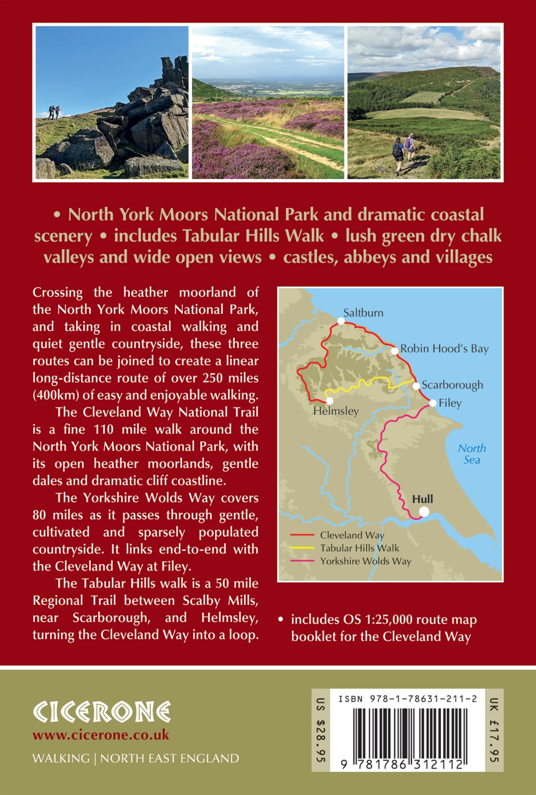 A guidebook to the Cleveland Way and Yorkshire Wolds Way National Trails and the Tabular Hills Walk. All set within the North York Moors National Park, these straightforward routes can be walked individually in about 1 week or combined to form a long-distance walk of 405km (252 miles) taking 3 weeks.