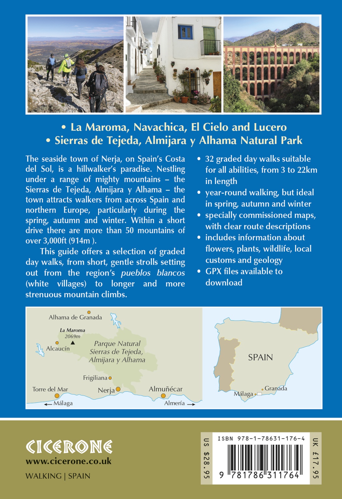 A guidebook to 32 day walks in and around the coastal town of Nerja, Spain. Exploring the mountains, gorges and white mountain villages of the Sierras Tejeda and Almijara and Alhama Natural Park in southern Andalucia, there are routes for walkers of all levels of fitness and experience.