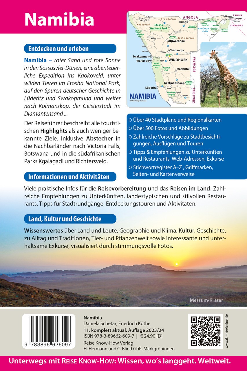Namibia entdecken und erleben: Der Reiseführer beschreibt alle touristischen Highlights als auch weniger bekannte Ziele. Inklusive Abstecher in die Nachbarländer nach Victoria Falls, Botswana und in die südafrikanischen Parks Kgalagadi und Richtersveld.
