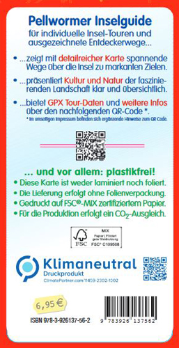 Die Pellwormer Insel-Erlebnis-Karte bietet eine detailgenaue Inseldarstellung und interessante Portraits der Erlebnisorte. Touristische und landeskundliche Informationen helfen die Natur und Kultur zu entdecken. Für eine individuelle Pellwormer Entdeckungsreise findet sich auf der Rückseite der Karte eine Zusammenstellung aller bemerkenswerter Orte und Einrichtungen auf der Insel. Viele Tipps sind weitergehend erläutert und lassen sich anhand der Angaben zum Suchgitter und den Rubriken schnell auffinden. Mittels eines aufgedruckten QR-Codes kann der Nutzer sich direkt aktuelle Informationen verschaffen. Die Kartographie ist sehr detailliert. Fotos und informative Texte geben dieser Karte einen besonderen Langzeitwert.