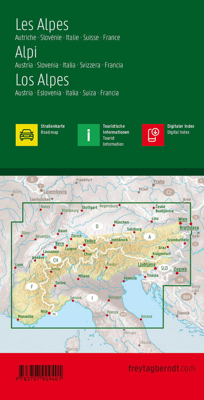 | Schlagworte | Alpenländer • Autokarte • Freizeitkarte • Karte • Länderkarte • Road Map • Straßenkarte • the Alps |